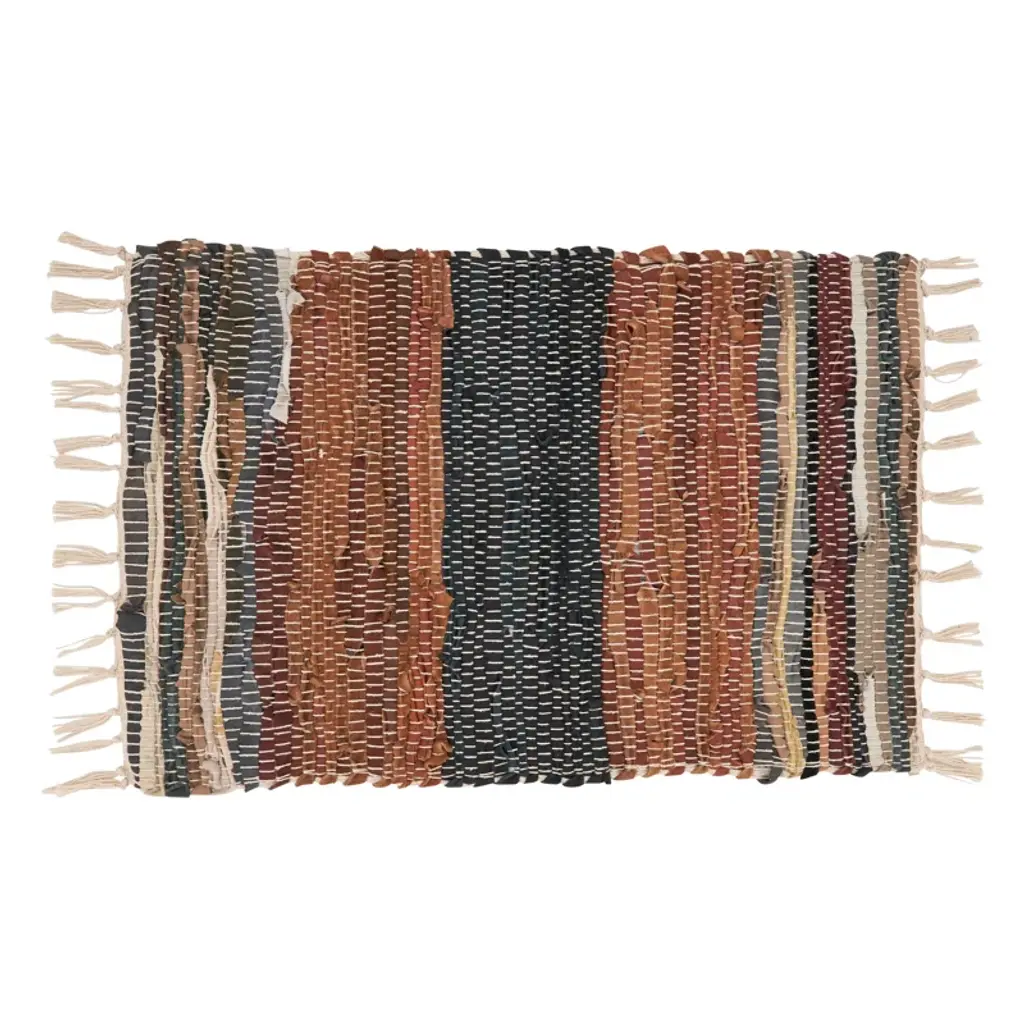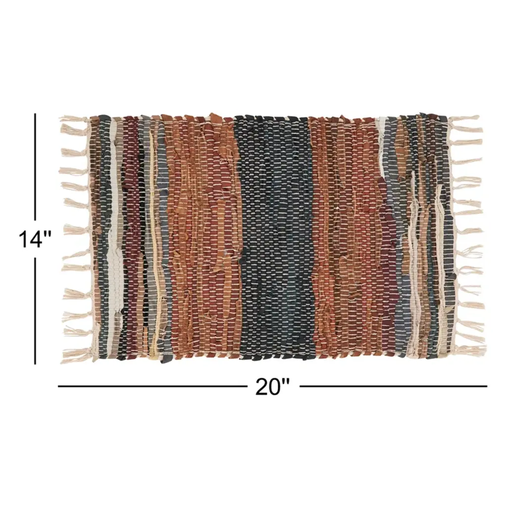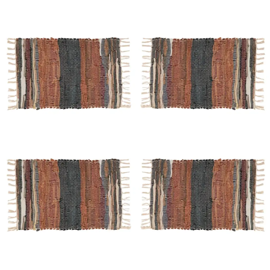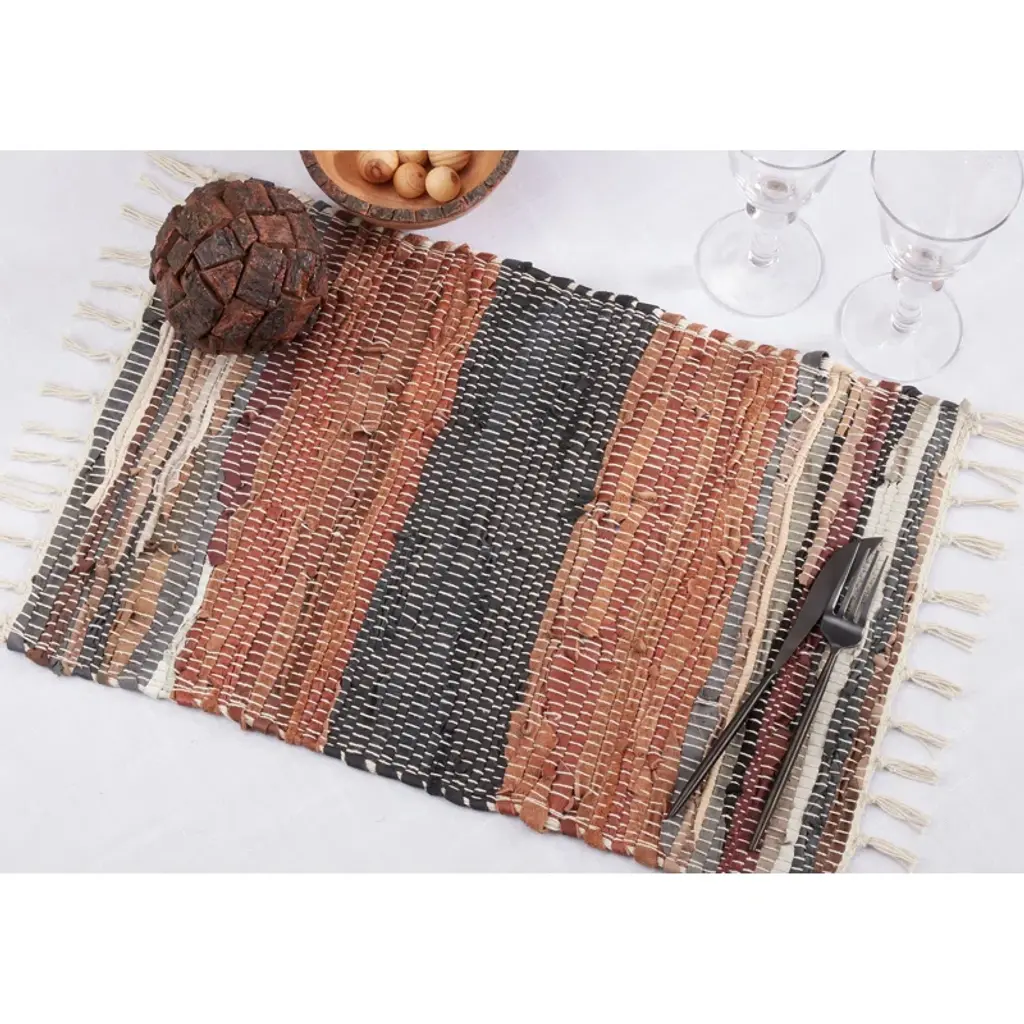 If you're looking for a unique table accent to spruce up your decor, then look no further than this charming set of Striped Chindi Multicolor Placemats. Made with 100% leather and a Chindi construction, the set brings a rustic look and feel to your tabletop. Pair it with solid colors within the same palette.