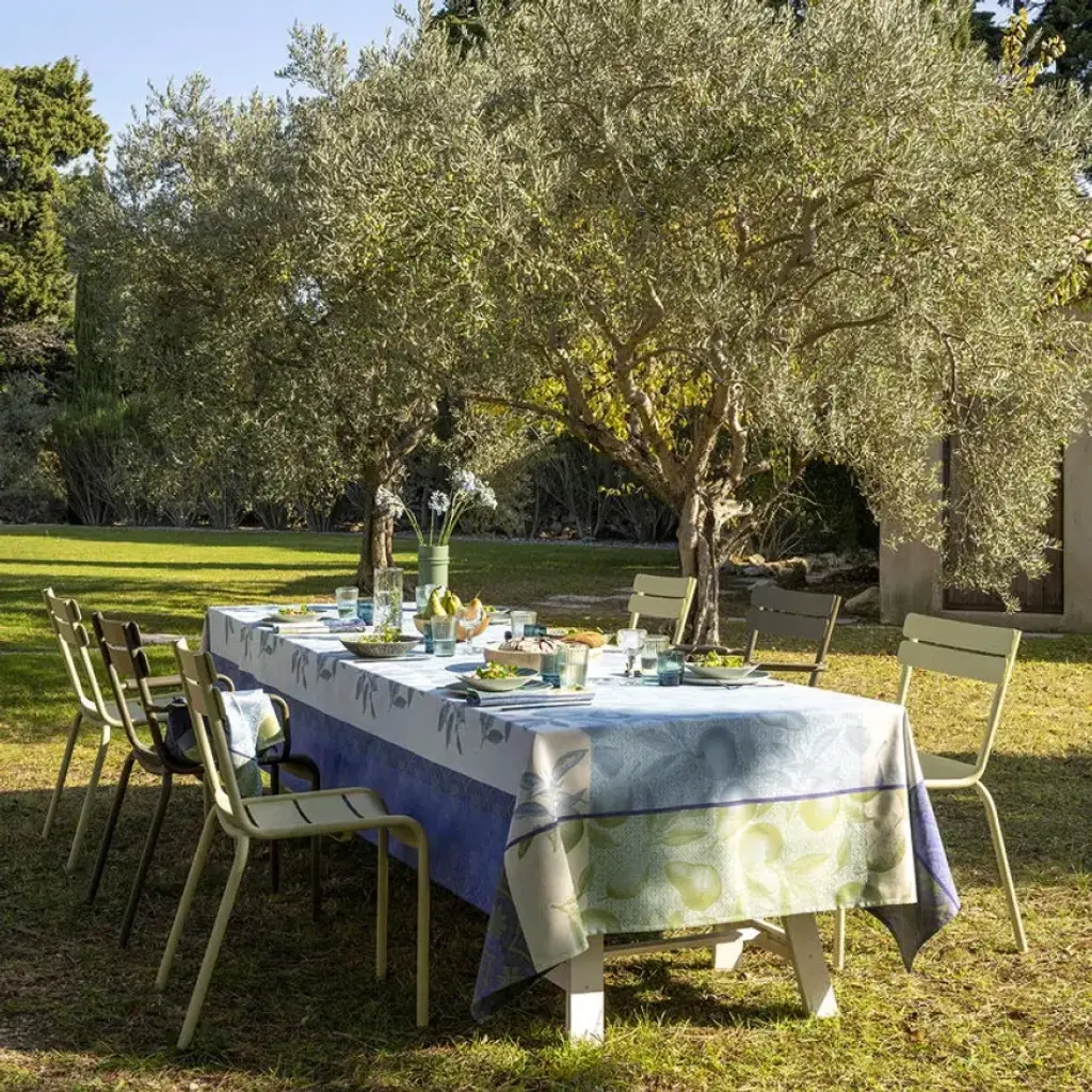 The story of Arrière-Pays begins in Provence, on sunny markets. A delicate weaving of local fruits, geometric and ornamental patterns. Family, gourmet and colourful, the table is a reminiscent of precious holiday memories. Since 1888, Le Jacquard Francais has created a collection of table linens without equal. Weavers, warp beamers, knotters and other specialists work in harmony to perfect the weaves and colors of all of their linens. Classic Le Jacquard Francais linens are characterized by using framed woven patterns to create timeless tablecloths, napkins, placemats and table runners that will beautify your tables for many years. Le Jacquard Francais coated tablecloths are made of 100% cotton weave with long fibers. They are waterproof and stain-resistant thanks to a patented and exclusive acrylic coating that withstands washing. Newly introduced, LJF by Le Jacquard Francais is a more casual line of contemporary looks that mixes colors and patterns and plays with graphics. Practical and easy to use, these tablecloths will stand up to frequent use in the kitchen or patio.