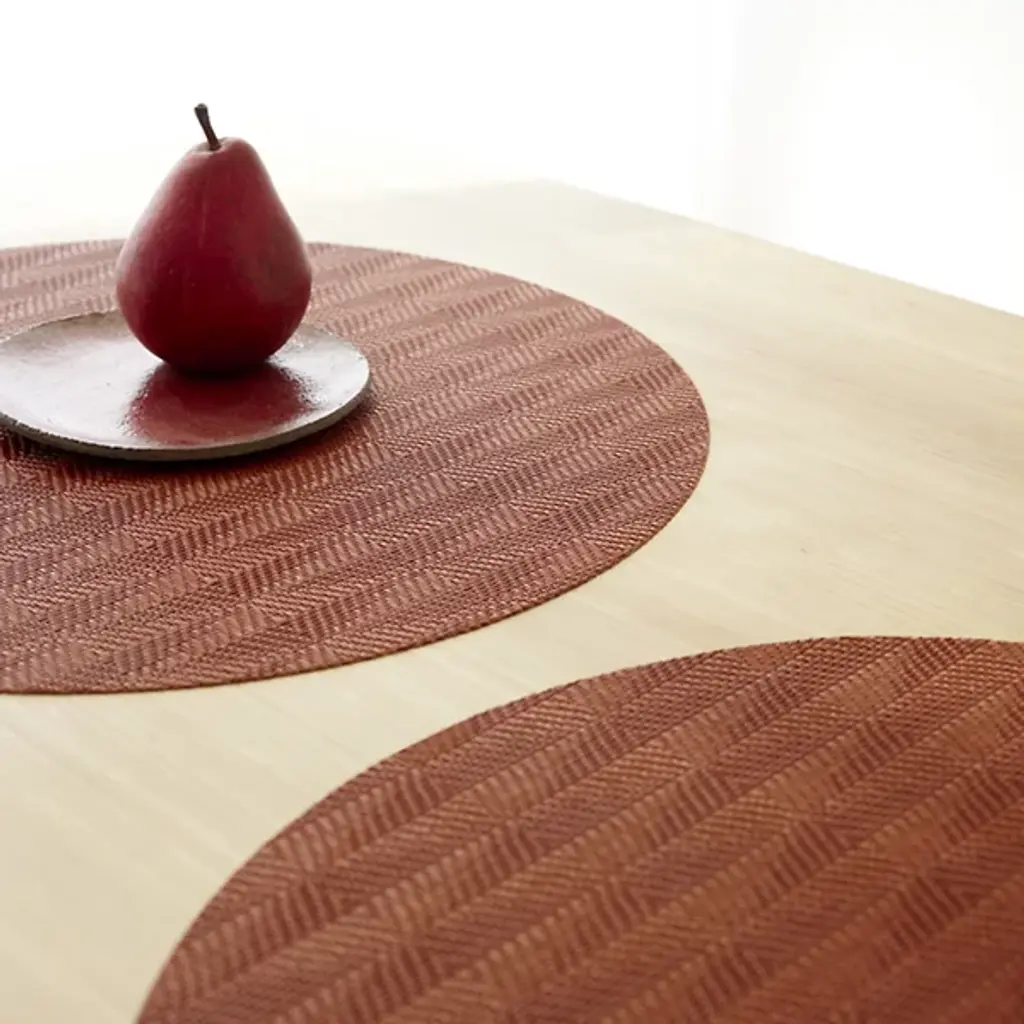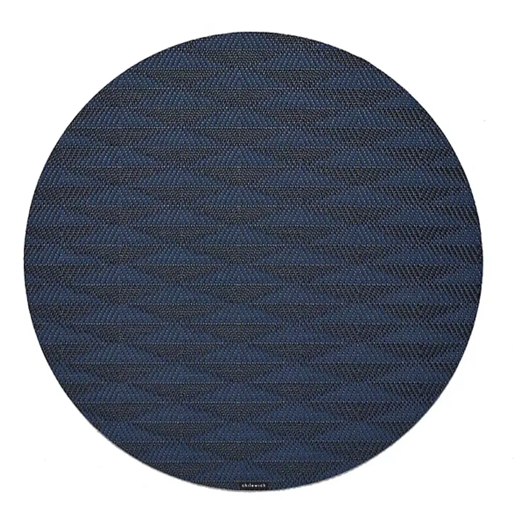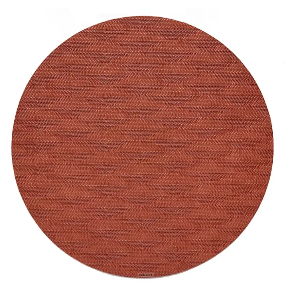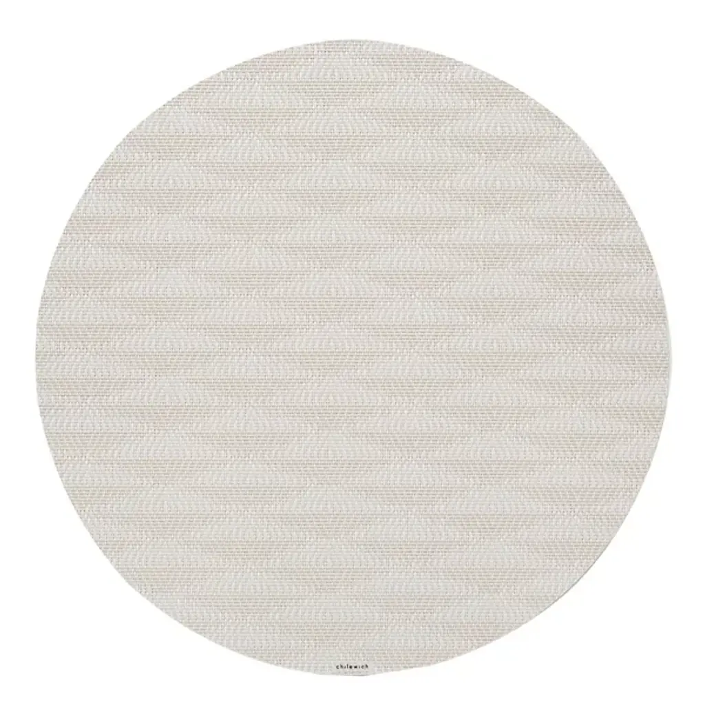 Made in the USA, the Arrow Round Placemat is presented by Chilewich. Crafted from signature Terrastrand woven vinyl, this placemat showcases exceptional craftsmanship and durability. The gently contrasting geometric pattern along the surface provides a pleasant focal point. Easily upgrade your dining space with this piece, as it effortlessly combines form and function.