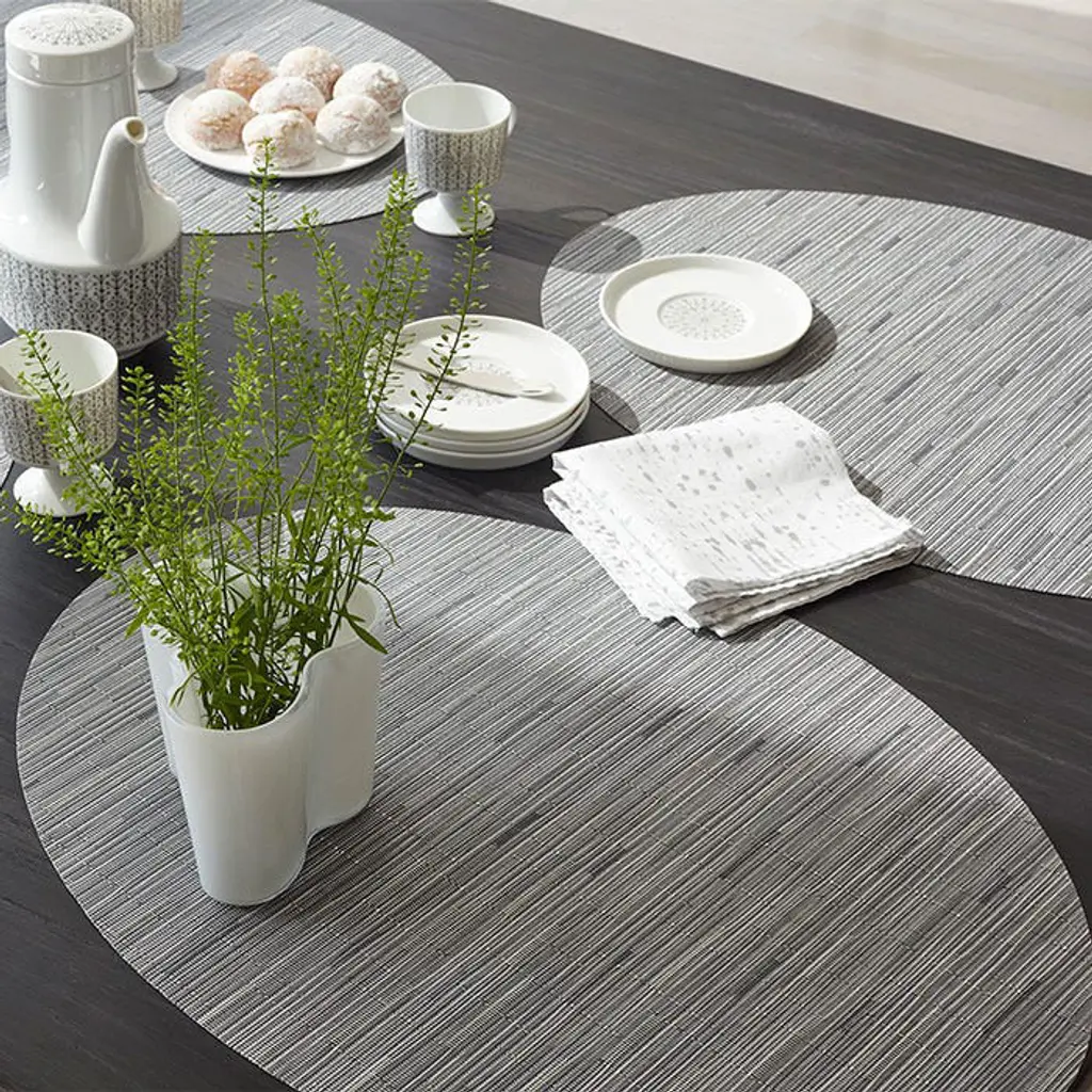 Boasting a subtle design that will complement and enhance a wide range of tablescapes, the Bamboo Oval Table Mat from Chilewich is a simple, yet elegant way to elevate your interiors. Made in the United States from eco-friendly materials, this set of four placemats is easy to clean, phthalate free, and incredibly durable making it an excellent option for everyday living. Highlights Note: Custom sizes available upon request