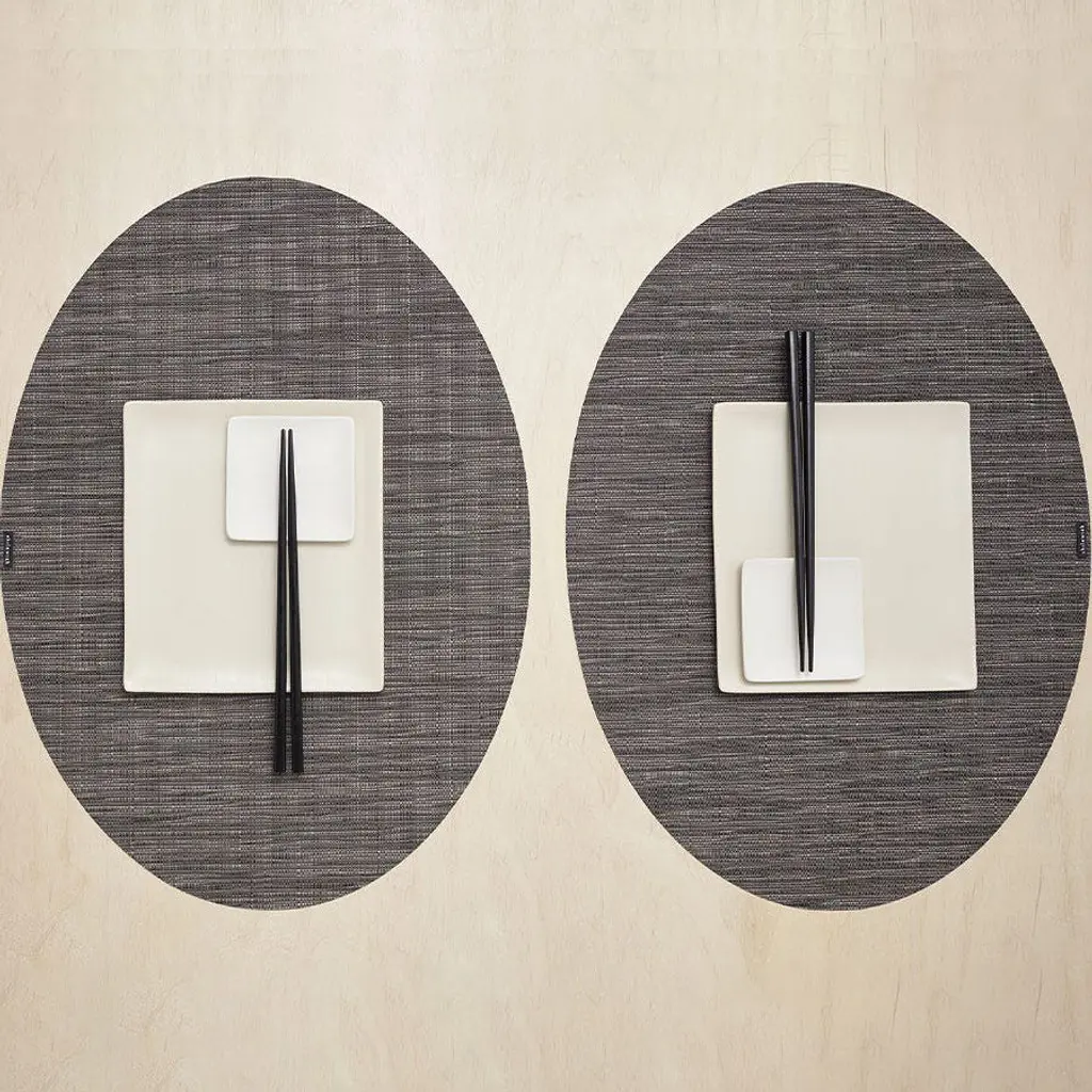 Boasting a subtle design that will complement and enhance a wide range of tablescapes, the Bamboo Oval Table Mat from Chilewich is a simple, yet elegant way to elevate your interiors. Made in the United States from eco-friendly materials, this set of four placemats is easy to clean, phthalate free, and incredibly durable making it an excellent option for everyday living. Highlights Note: Custom sizes available upon request