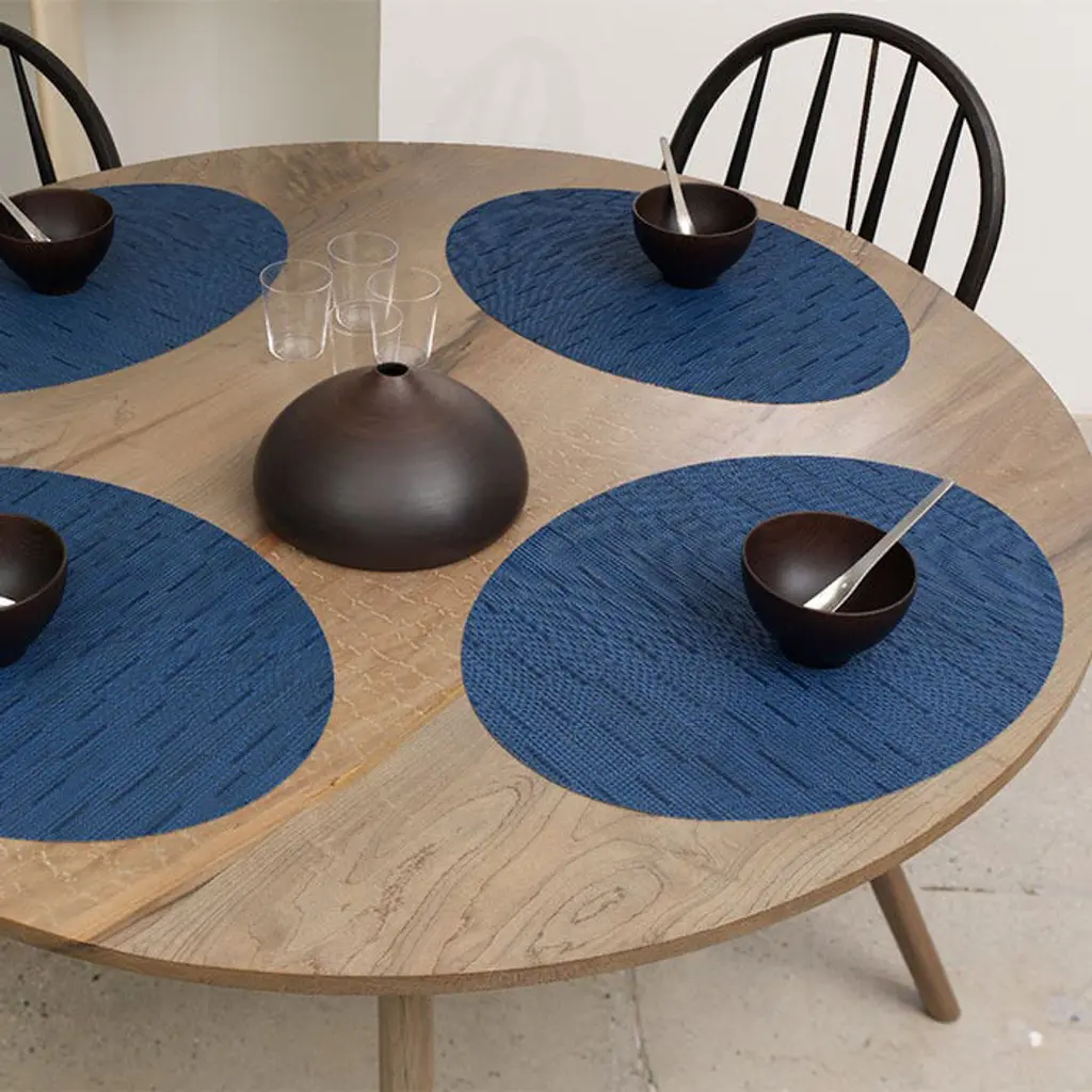 Boasting a subtle design that will complement and enhance a wide range of tablescapes, the Bamboo Oval Table Mat from Chilewich is a simple, yet elegant way to elevate your interiors. Made in the United States from eco-friendly materials, this set of four placemats is easy to clean, phthalate free, and incredibly durable making it an excellent option for everyday living. Highlights Note: Custom sizes available upon request