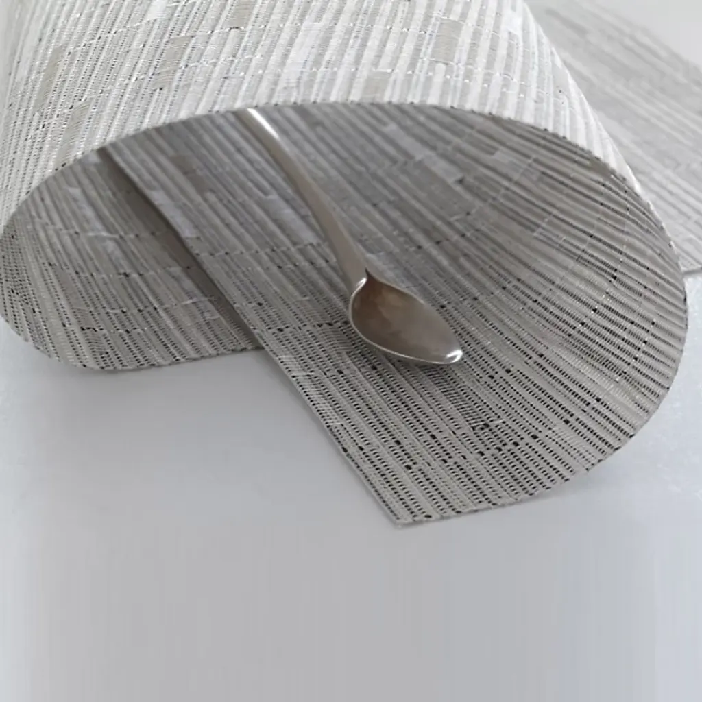 The delicate weave of the Chilewich Bamboo Placemat brings both modern practicality and a sense of Asian serenity to a tabletop. The natural-looking weave of bamboo is replicated in durable vinyl. The set comes in a veritable rainbow of neutral and vibrant colors, sure to complement tableware ranging from traditional to minimal.