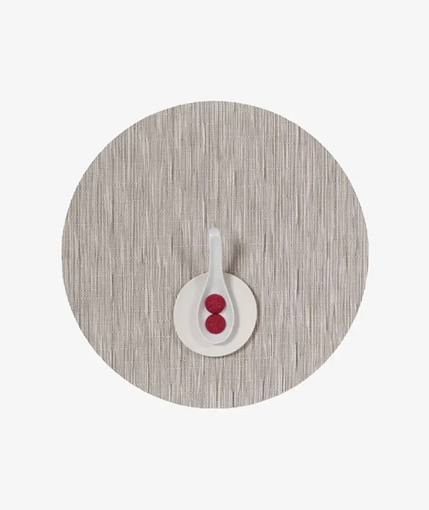 Bamboo combines innovative practicality with a serene sensibility. This subtle design has a natural feel that will complement and enhance a wide range of tableware, from traditional to contemporary. TO CLEAN: Simply wipe with soap, water and a soft sponge or cloth. Scrub stubborn stains with a soft bristle-brush and a bleach-based cleanser. For over a decade, New York based designer Sandy Chilewich has been creating original and innovative vinyl products for the home. Her woven, tufted, molded and spun textiles are available in a range of vibrant and neutral hues that have become synonymous with the Chilewich brand name.