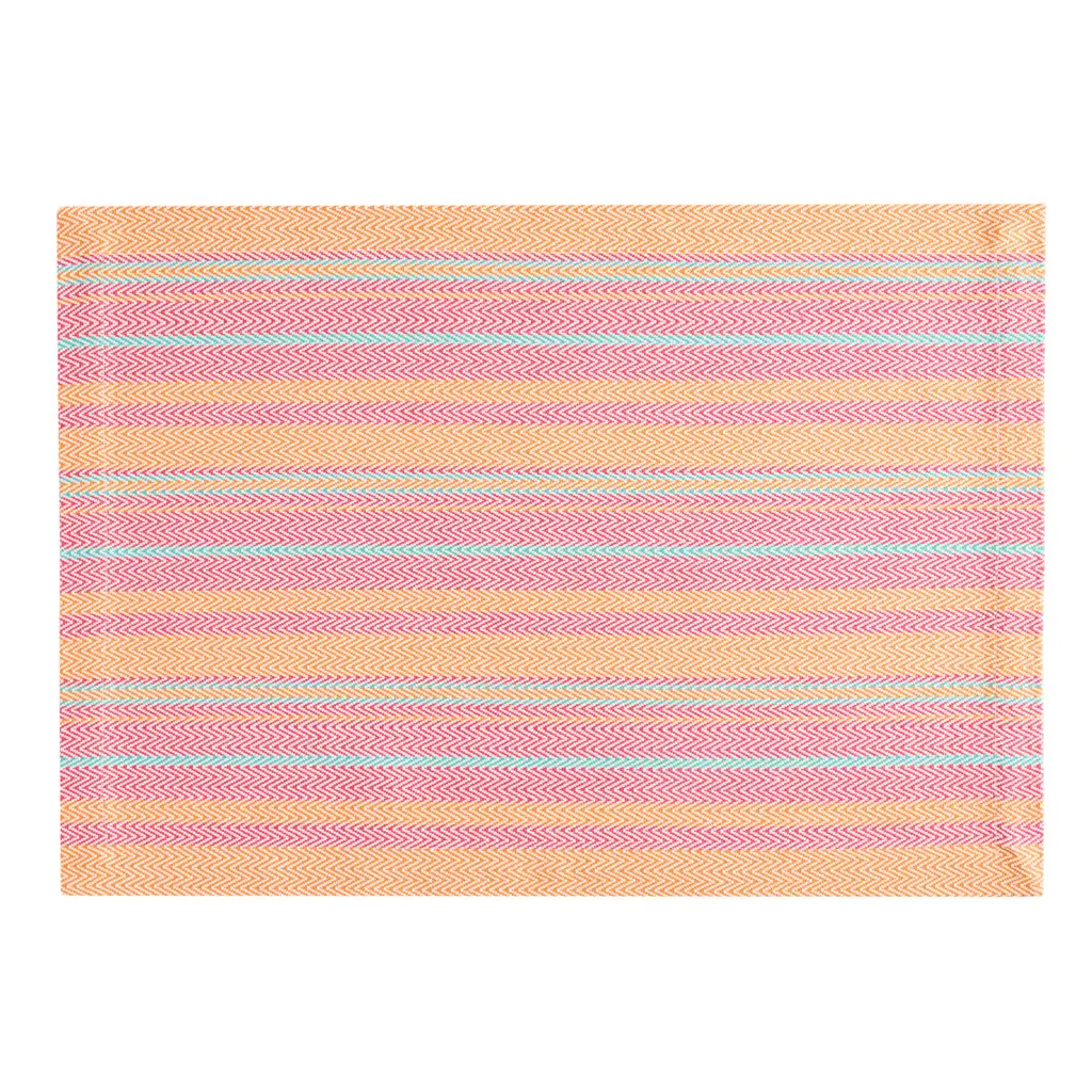 Bargello provides you with a cool, contemporary look without any hassle. The multicolored zigzag pattern allows you to pair it with many different napkins and the texture vinyl easy care mats allow you to clean up with a breeze. Just simply wipe with a damp cloth. Available in 3 great color combos.