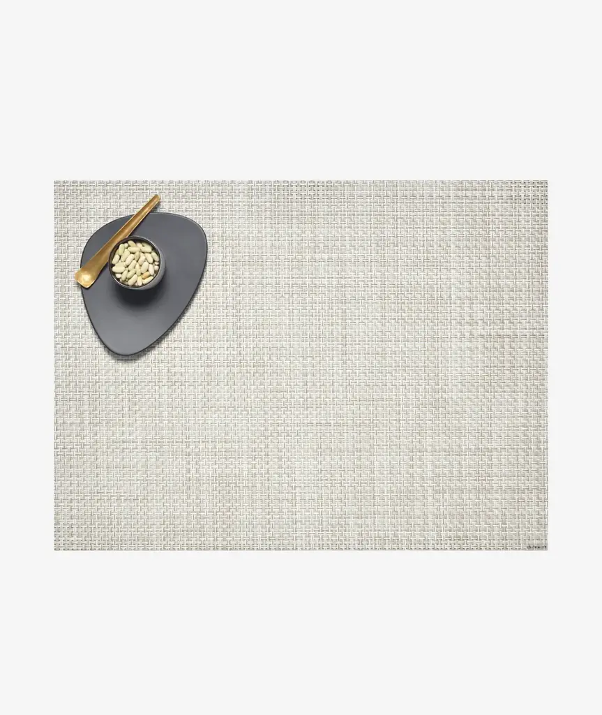 One of the oldest and simplest of weaving constructions, Chilewich's four-over-four Basketweave has become the most important vehicle for expressing our unique color point of view – from deep earth tones, to shades of metal, to our personal interpretation of brights. TO CLEAN: Simply wipe with soap, water and a soft sponge or cloth. Scrub stubborn stains with a soft bristle-brush and a bleach-based cleanser. For over a decade, New York based designer Sandy Chilewich has been creating original and innovative vinyl products for the home. Her woven, tufted, molded and spun textiles are available in a range of vibrant and neutral hues that have become synonymous with the Chilewich brand name.