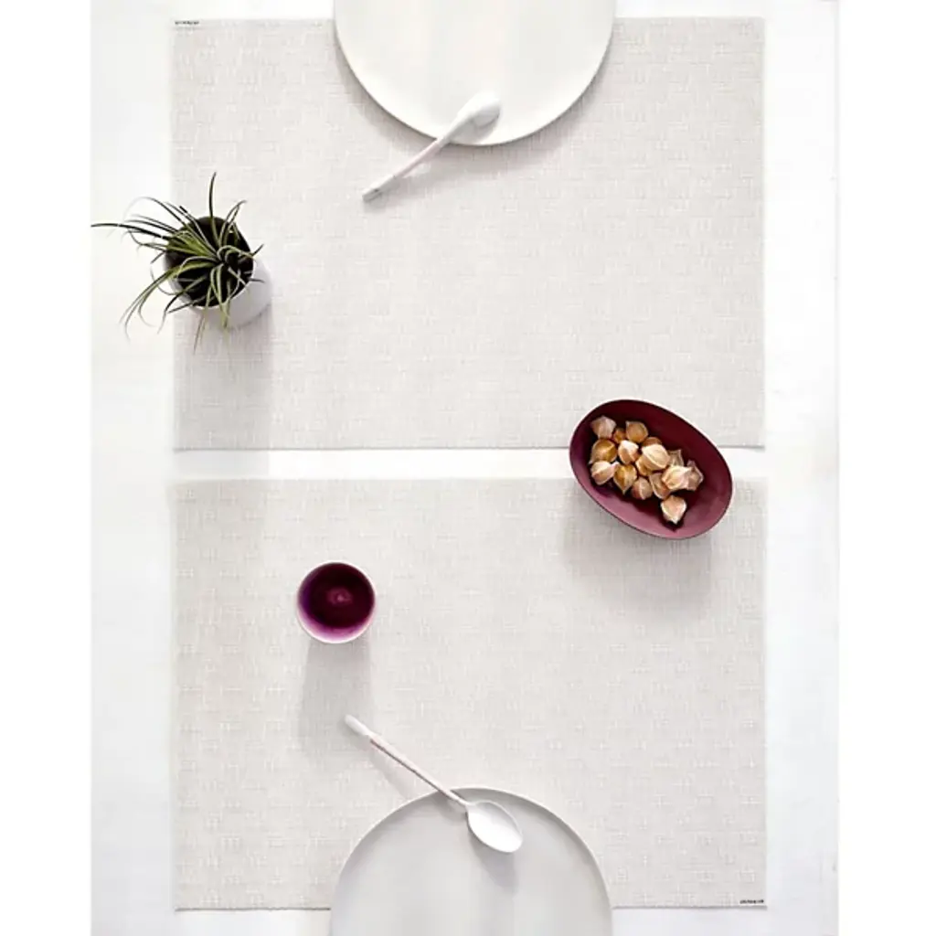 Accentuate your dining décor with the Nordic simplicity of the textured checker pattern of the Bay Weave Placemat by Chilewich. A rectangular surface woven with a jacquard pattern from checker-patterned and sustainable Terrastrand vinyl draws the eye while offering a steady surface for utensils and flatware, its robust texture is resistant to moisture, mold, and mildew, making cleanup a snap. A great choice for the solitary meal and able to serve well indoors and out, it shines when arranged in a set of several placemats, creating a unified presence wherever the first one is placed.