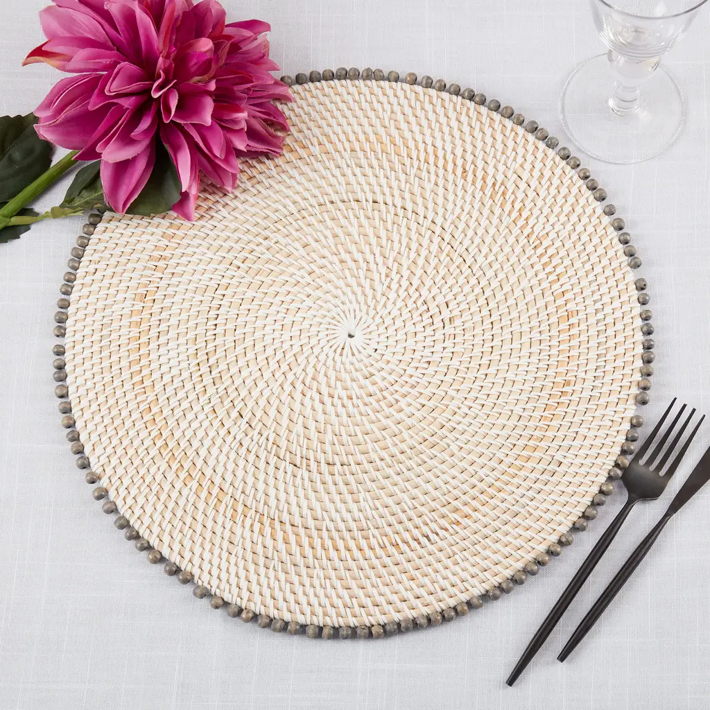 Add a charming, ornamental touch to your usual table decor with this delightful set of Beaded Edge Table Mats. The natural look and feel is perfectly styled up by the distinctive beads that adorn the edge of the placemats. The set is very easy to pair with a wide range of tableware.