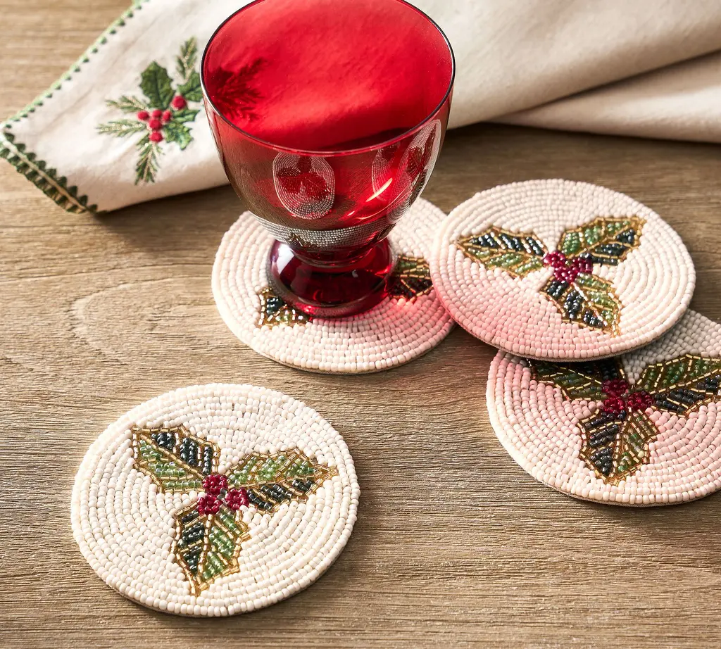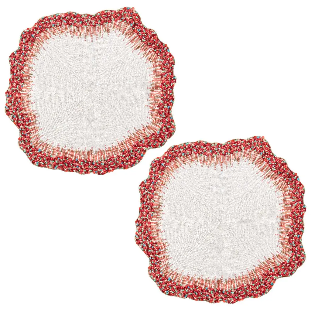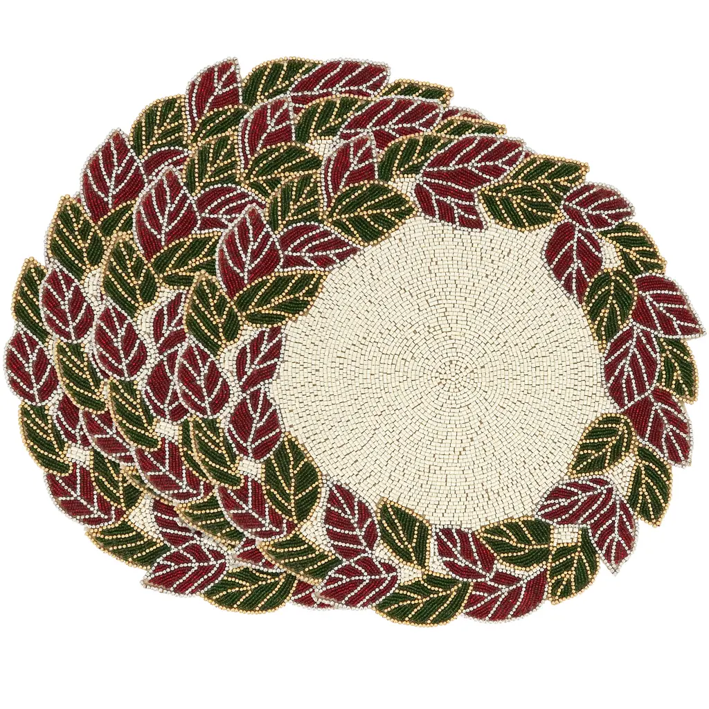 Easy to pair with a wide range of table linens and dinnerware, this charming set of Beaded Leaves Placemats is a versatile addition to your dining room arsenal. The red and green leaves bring a beautiful splash of color to the tabletop, while the glass beads catch and reflect light.