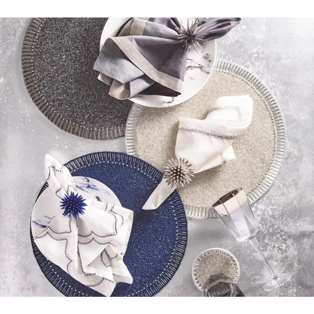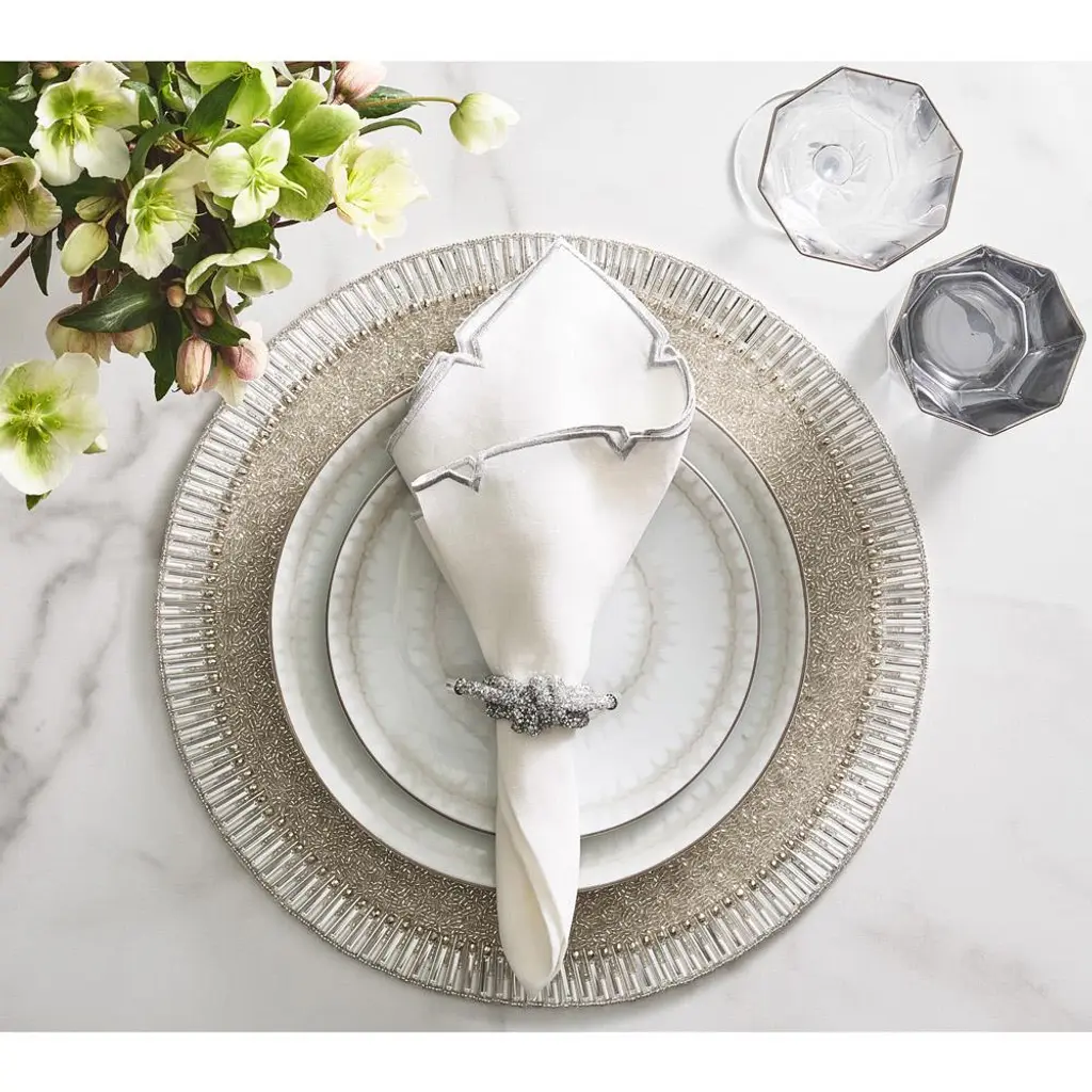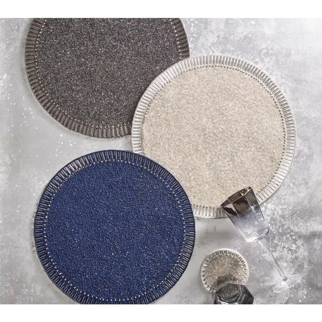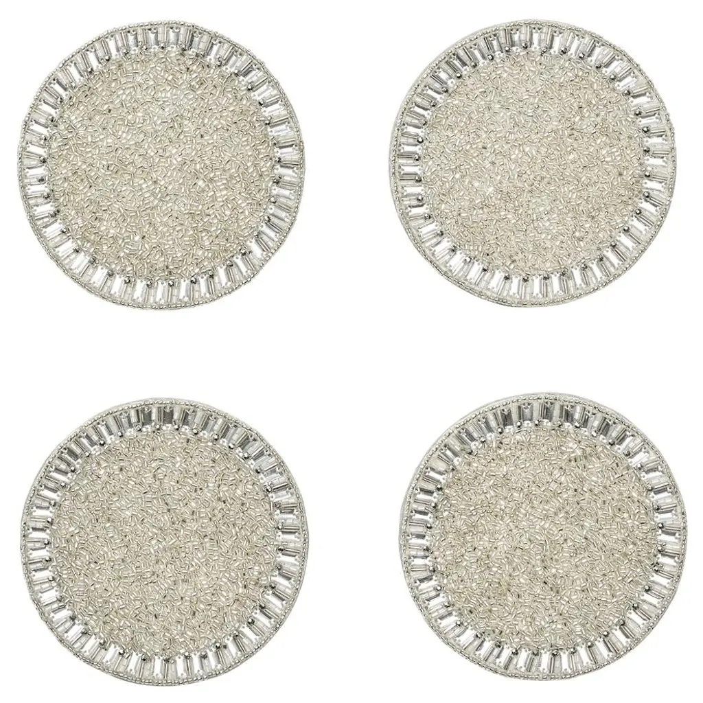 Bevel Hollywood Regency Silver Glass Beaded Placemat - Set Of 4
