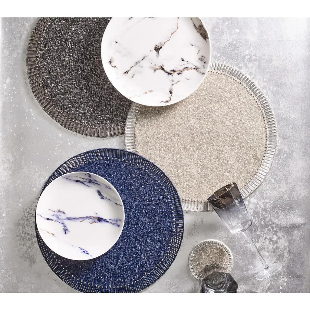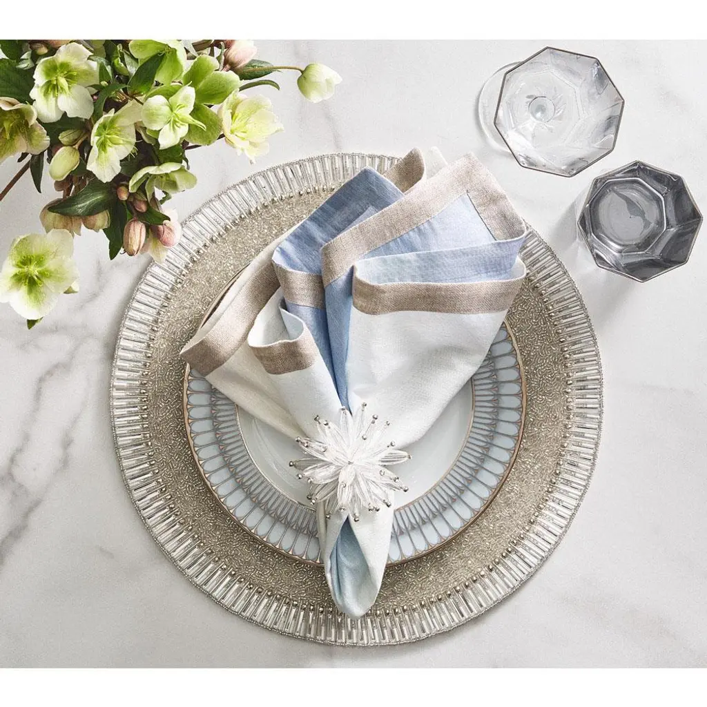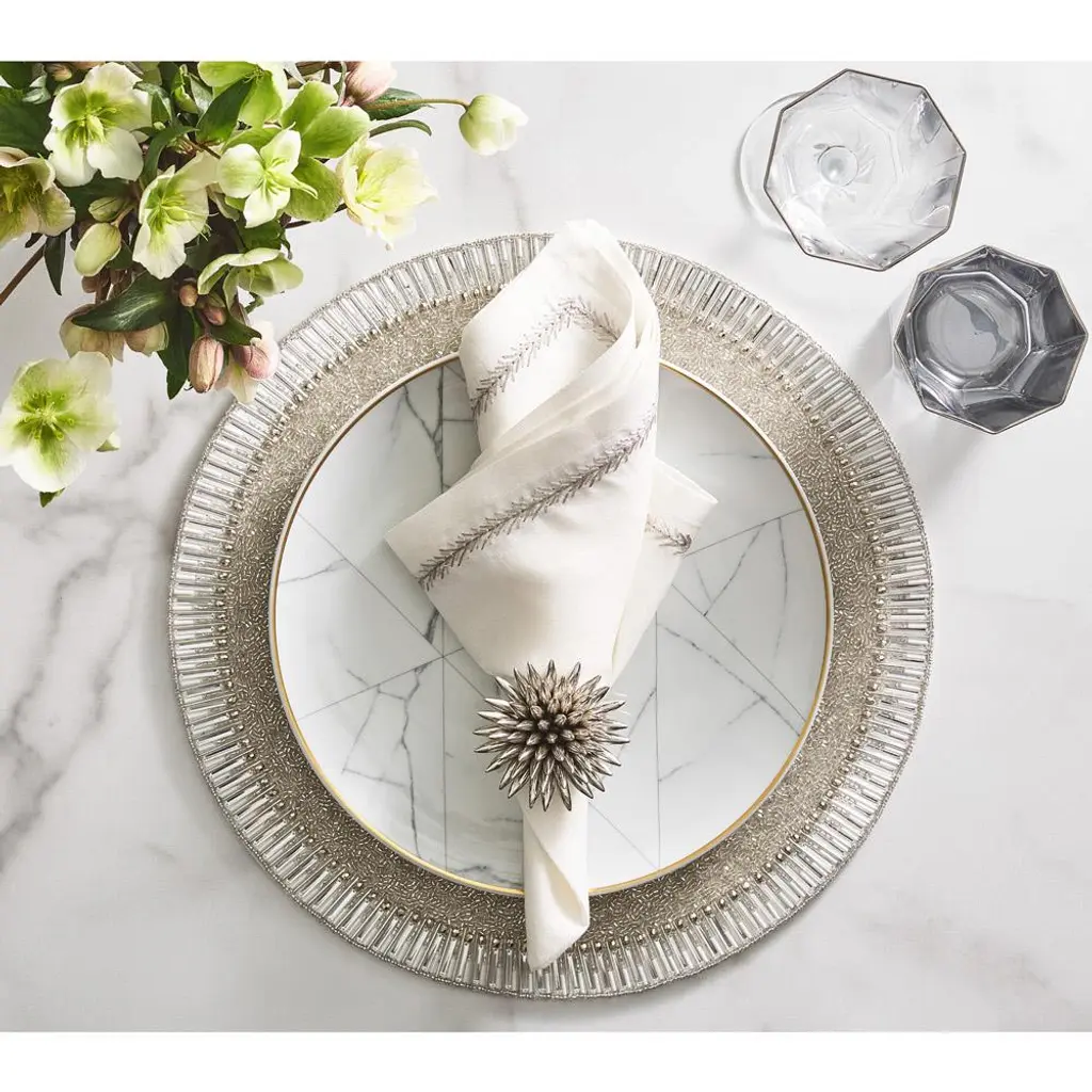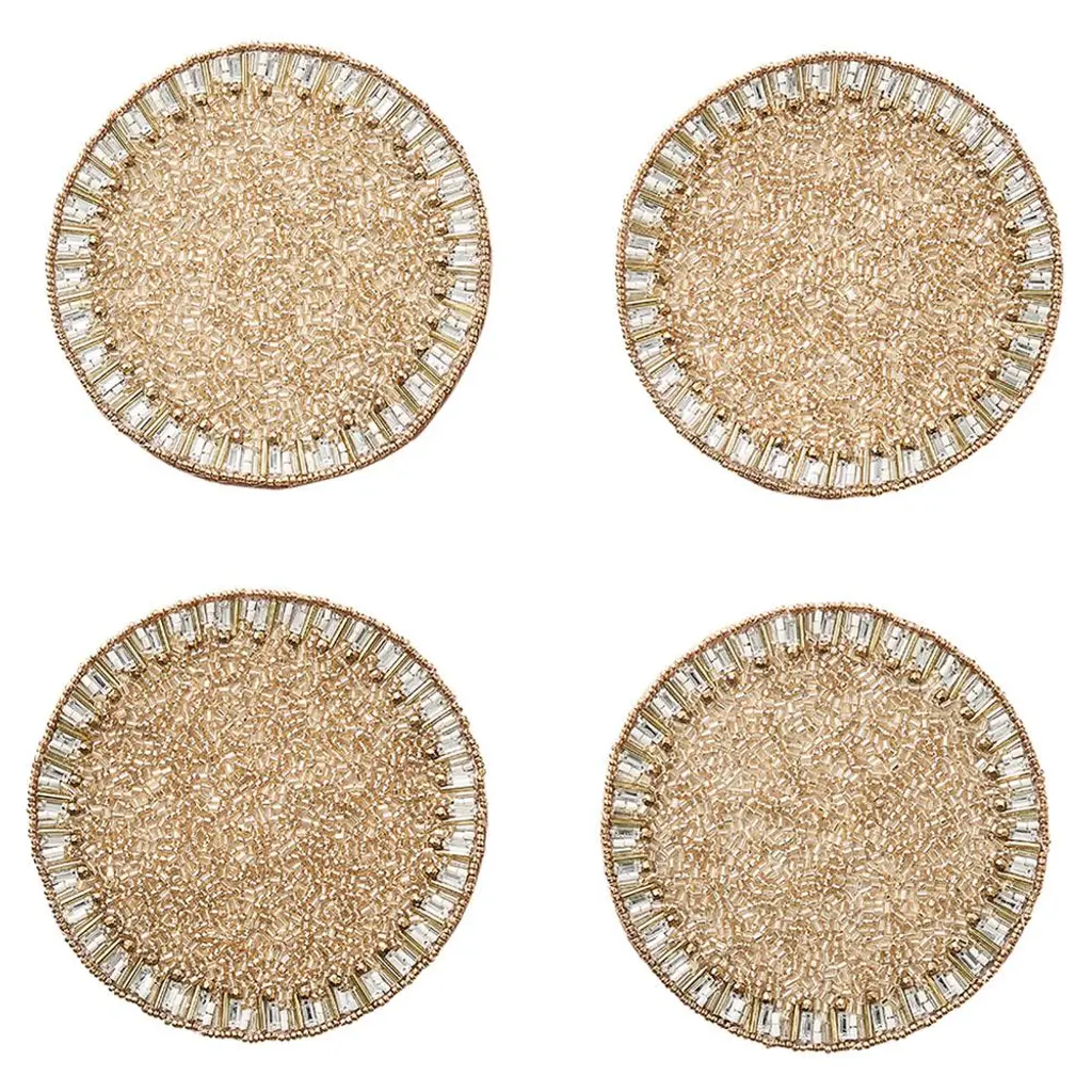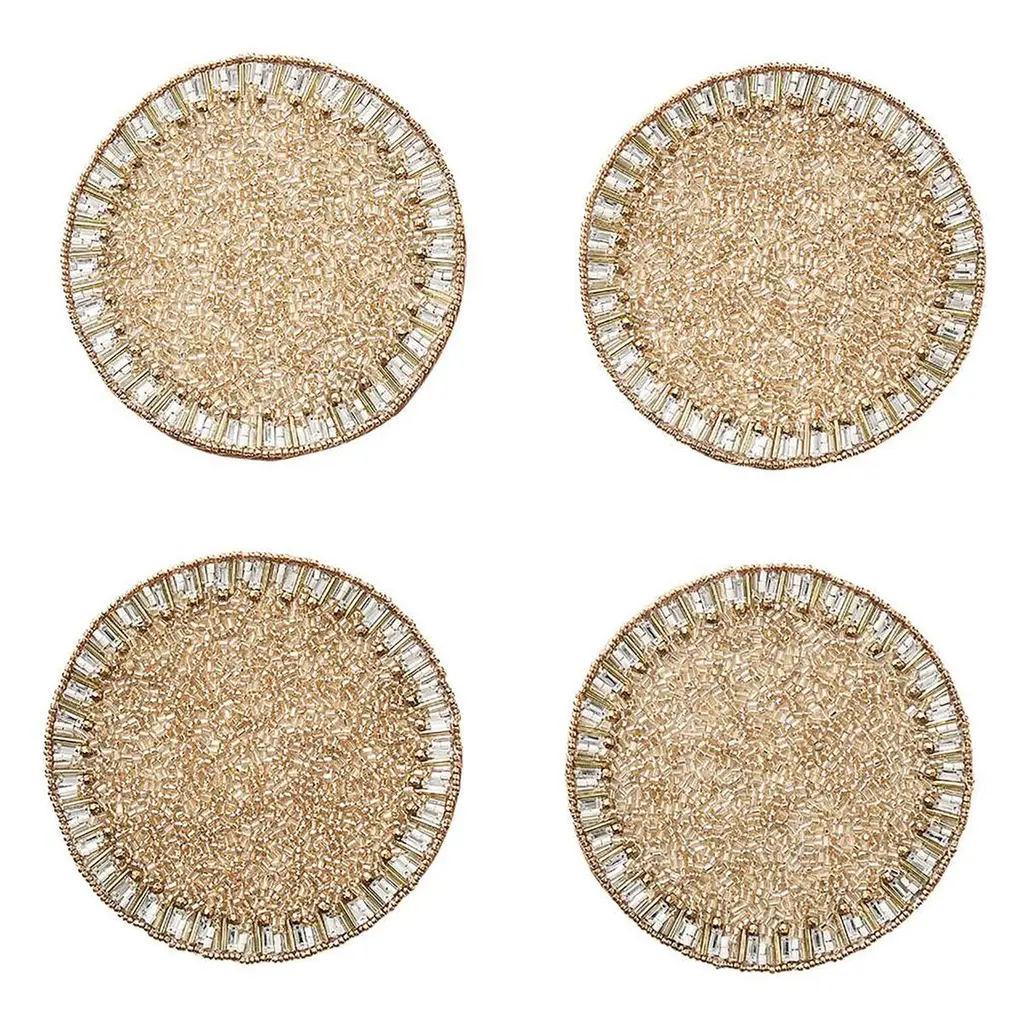 Bevel Hollywood Regency Silver Glass Beaded Placemat - Set Of 4