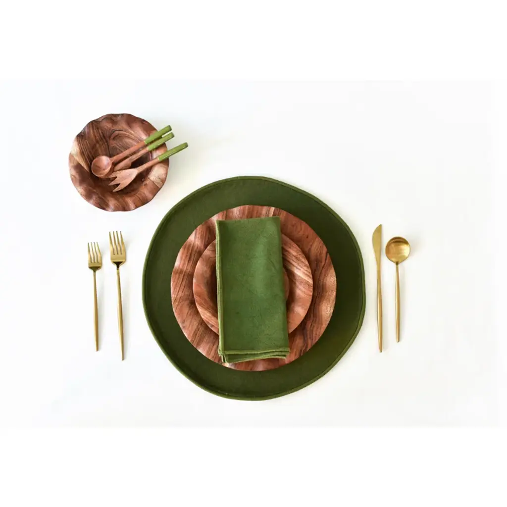 Handcrafted from sturdy cotton-blend fabric, these placemats showcase a modern circular silhouette in a range of vibrant colorways – ideal for mixing + matching with your favorite table settings. They’re machine-washable, iron-safe, and even reversible in case of any last minute spills. Set of four.
