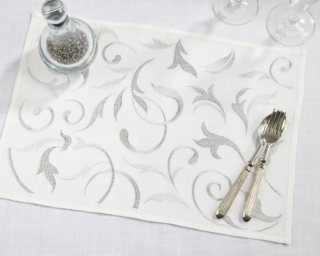 Experience the beauty of nature with this set of Embroidered Leaves Placemats. Delicate leaf motifs intricately embroidered on high-quality fabric create an enchanting table setting. Elevate your dining experience with these elegant and captivating placemats that effortlessly blend nature-inspired charm with refined sophistication.