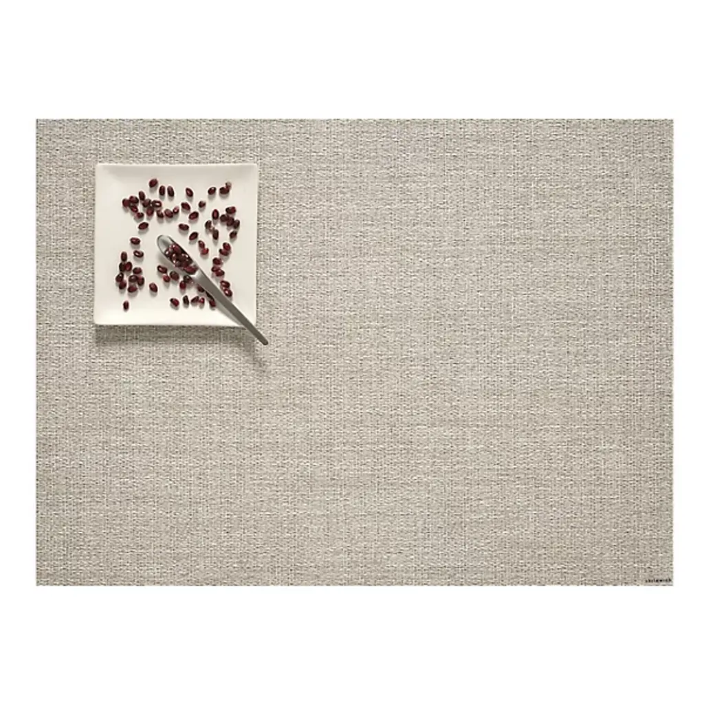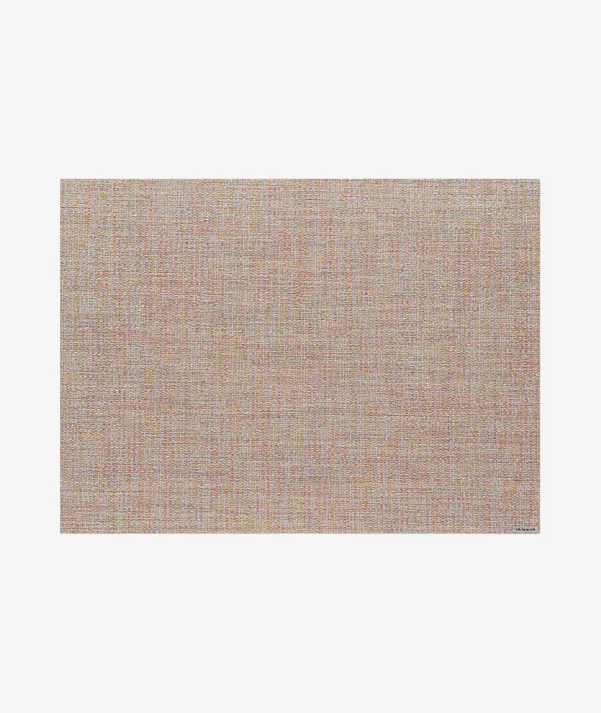 Composed of a tactile mix of yarns, Bouclé is a crepe weave that adds visual interest without dominating. The rich texture evokes the nubby, character-laden surface of fine fabrics, with the added durability and easy maintenance of all things Chilewich. TO CLEAN: Simply wipe clean with warm water, mild soap and a clean soft sponge. Rinse well and air dry. Top layer metallic foil may be damaged if treated with rough sponges/brushes, harsh soaps or chemicals. For over a decade, New York based designer Sandy Chilewich has been creating original and innovative vinyl products for the home. Her woven, tufted, molded and spun textiles are available in a range of vibrant and neutral hues that have become synonymous with the Chilewich brand name.