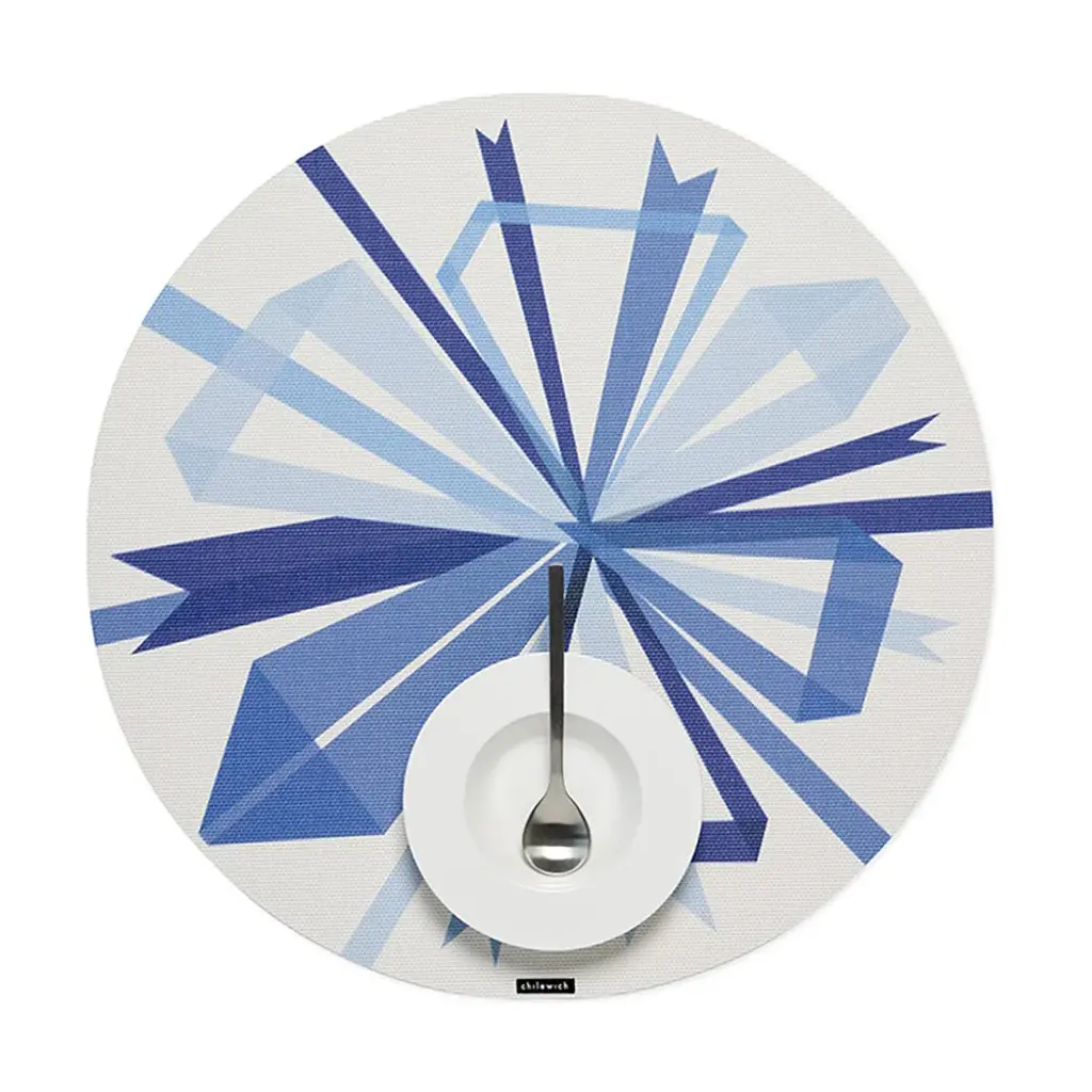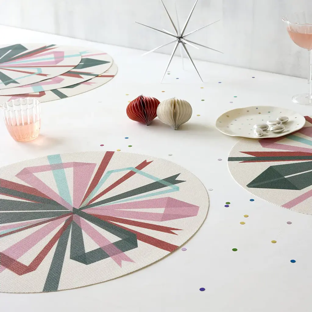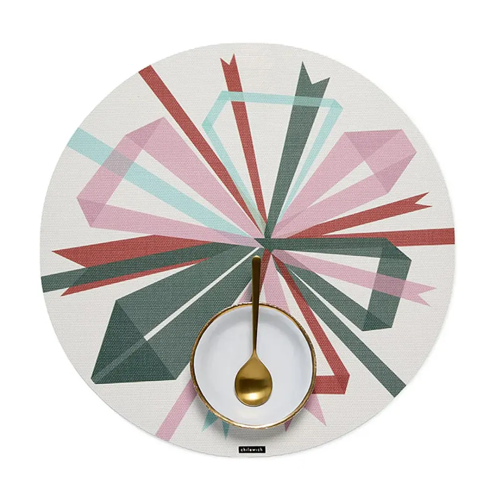 Indulge in the exclusive elegance of the Bow Round Placemat Set from Chilewich, a refined debut that reimagines traditional seasonal aesthetics. These distinguished table accessories masterfully integrate the luxurious woven character of TerraStrand with meticulously crafted printed elements, offering both exceptional durability and effortless maintenance. The sophisticated color composition achieves a delicate harmony between festive exuberance and understated versatility, enabling these exquisite placemats to transition seamlessly from celebratory occasions to everyday dining experiences with uncompromising grace. Highlights