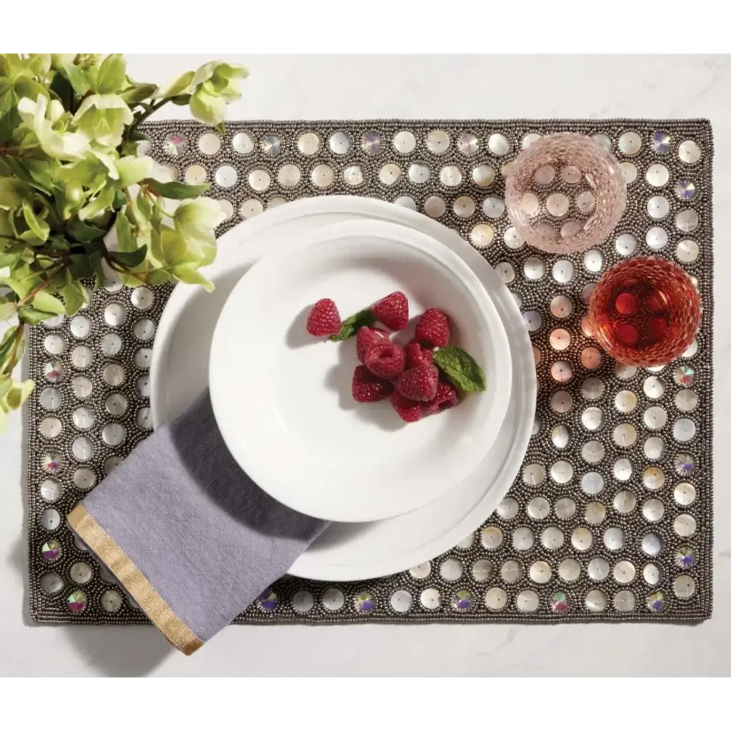 Finish: Silver/Sea Material: Glass Beads/Shell With scores of silver glass beads swirling around pearlescent seashells, our Brenda placemats make a table shine with natural radiance. Blue Pheasant's products are handmade with care by artisans using natural materials. They are not mass produced, so variation between products should be expected, and this is why we love them! It is these irregularities that makes Blue Pheasant what it is—a special brand whose collections are distinctly handmade, full of charm and originality you’ll never find in machine-made products.