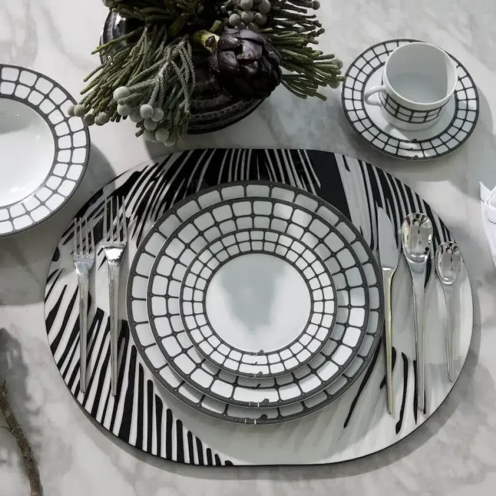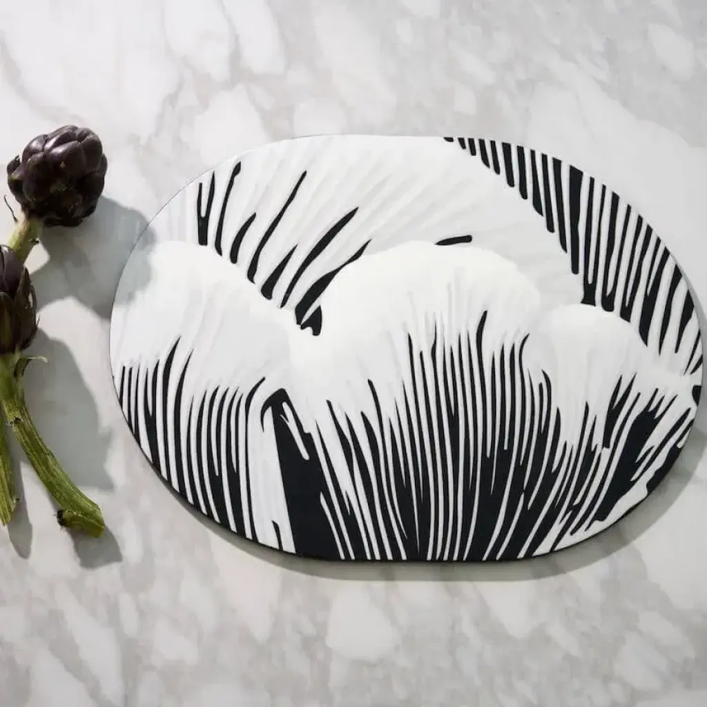 A Nina Magon X Von Gern Home collaboration results in extraordinarily unique placemats that will make your table setting truly stand out. High gloss lacquer accentuates the striking bold design, creating a sleek and modern look reflective of an exhibit showcased at an art gallery. The blossoming motif in classic black and white adds contemporary sophistication that can complement any home decor.