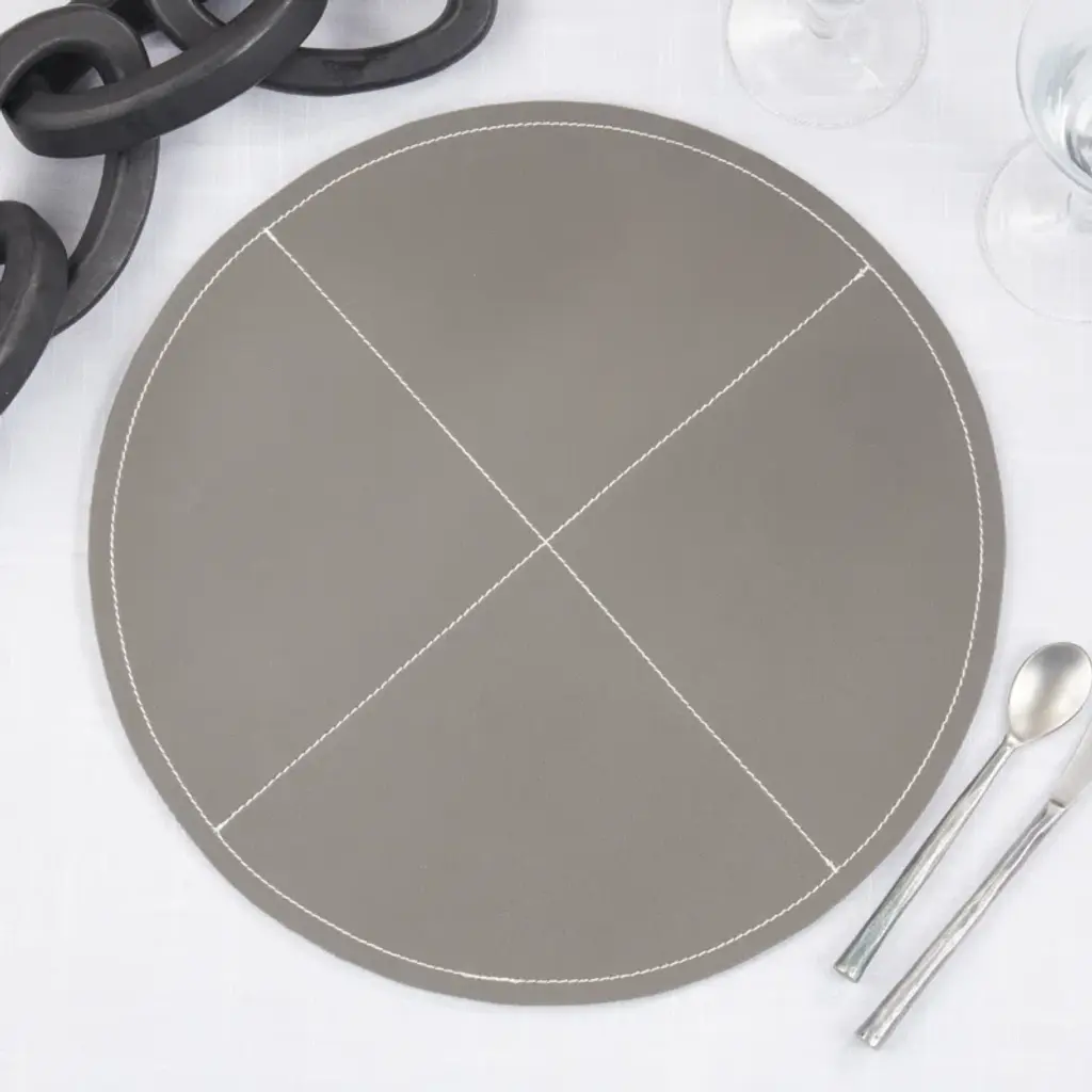 Upgrade your dining aesthetic with these Faux Leather Luxe Placemats. This set combines practicality and luxury, featuring a sophisticated faux leather texture. Elevate your table setting with these chic placemats, adding a touch of modern elegance to every dining experience.