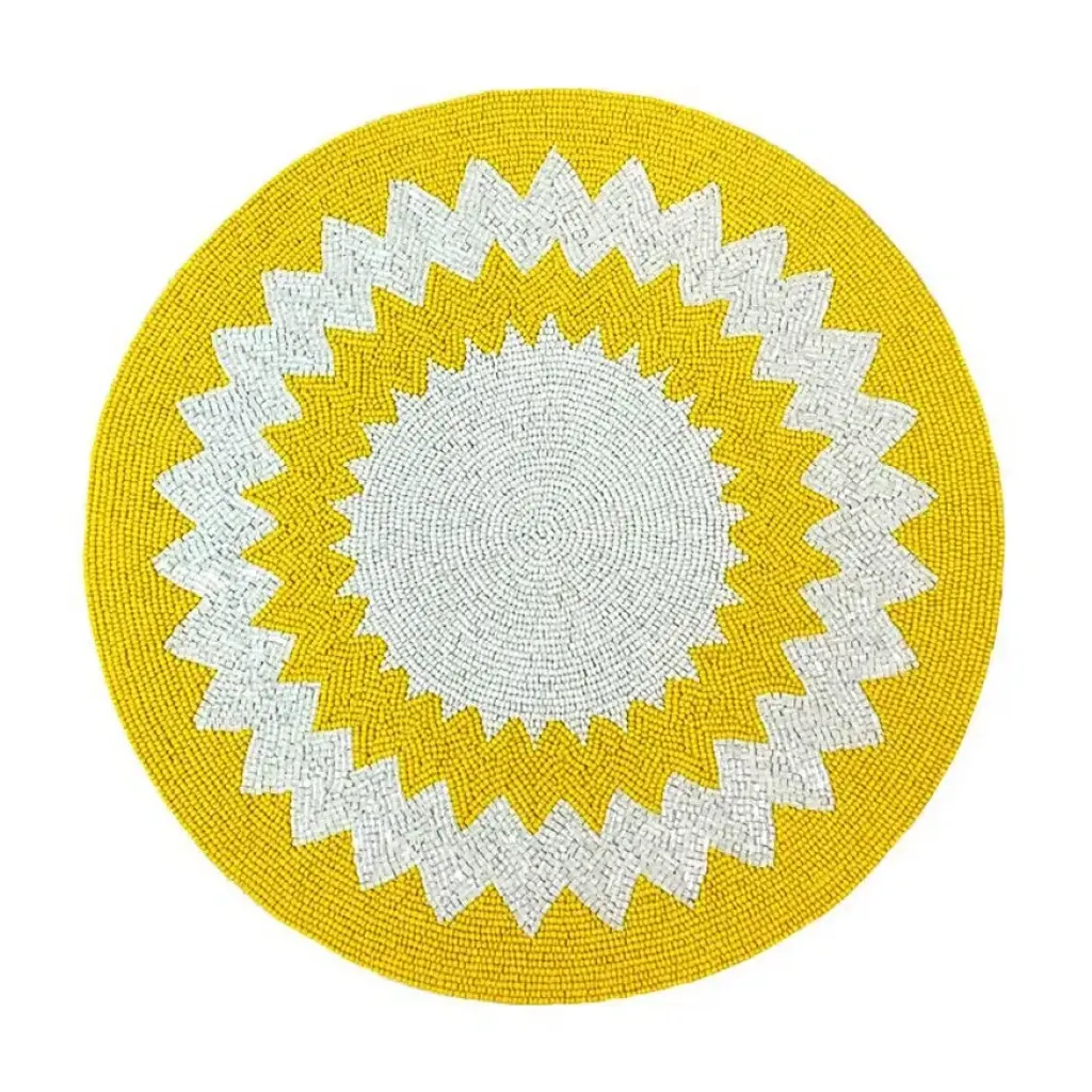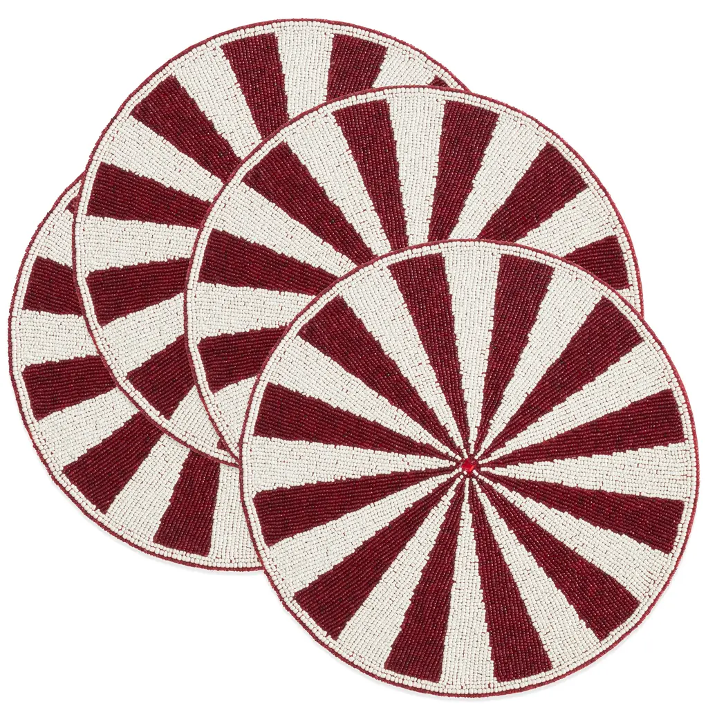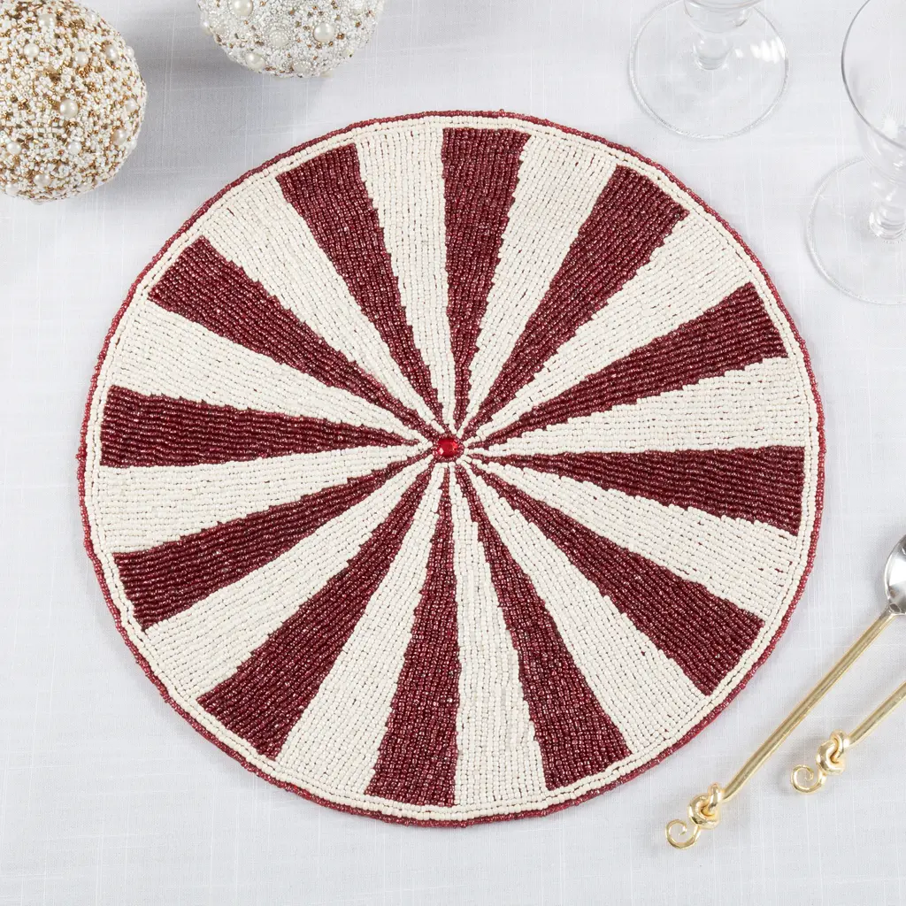 Treat your guests to a stylish and whimsical dining experience with these stunning beaded placemats and set the tone for your holiday celebrations! Featuring a candy cane design, with this chic set adds a touch of luxe glam to your decor with the rich pattern and pop of color. Balance the look with clean white dinnerware and napkins for a cohesive table.
