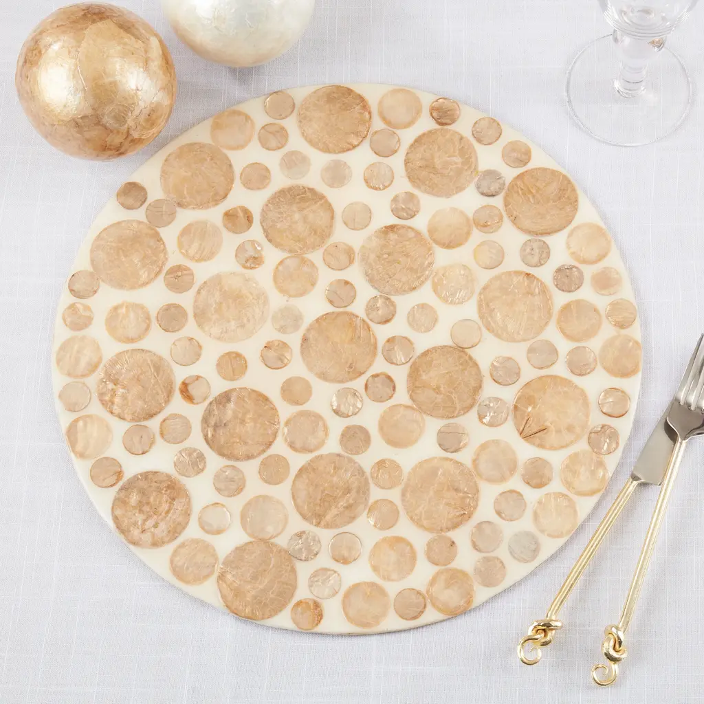 Protect and style your table with the Capiz Echoes Placemats. Functional and elegant, it's the perfect addition to elevate your dining experience. Beautifully crafted to complement a variety of styles and settings, it's a true standout. An ideal choice for gifting or adding a sophisticated flair to your space.