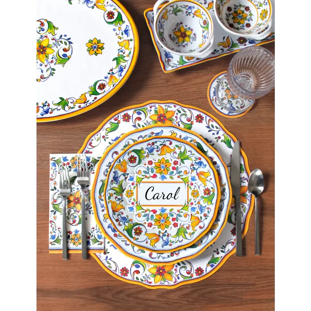 Beautifully crafted with textured surface treatments and exceptional weights, Le Cadeaux's signature melamine dinnerware is often mistaken for real ceramic Italian pottery. Ideal for outdoor and large group entertaining, Le Cadeaux's exclusive collections are inspired by the French and Italian countrysides, designed in Los Angeles, and made in Asia.