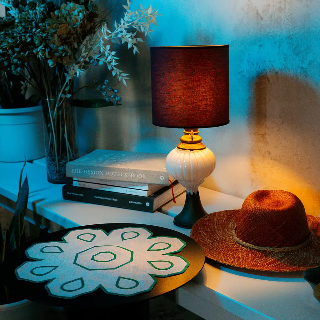 This exquisite set of limited-edition placemats draws inspiration in both shape and embroidery from the layout of the Swabian Caste located in Andria, Apulia, owned by Emperor Frederick II from the Hoenstaufen dynasty. Hand-sewn from Masters of Linen certified linen and impeccably embroidered with green Mako cotton, each placemat is a unique piece. Set of 6 available, please ask the Concierge for pricing.