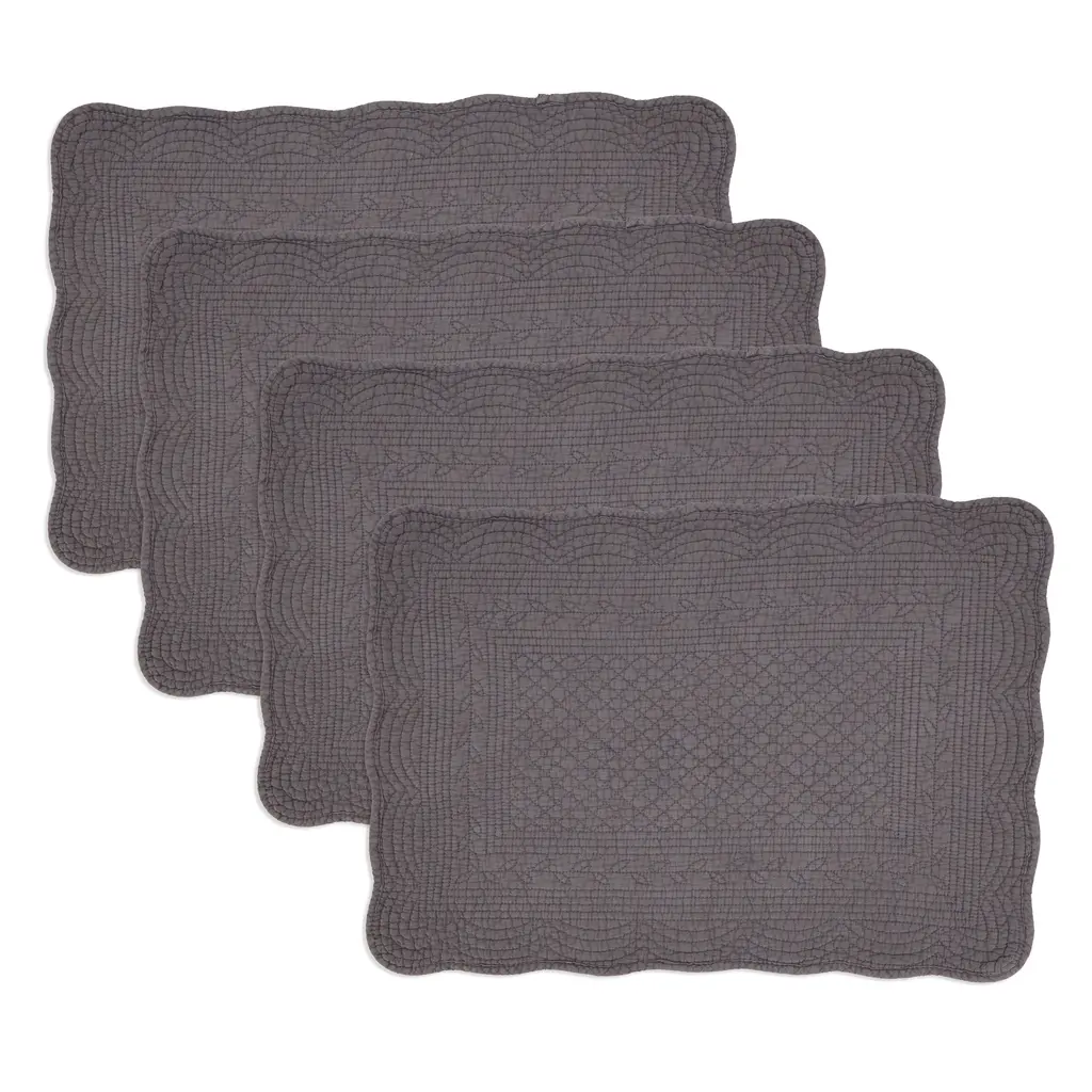 Charming Quilted Placemat, Set Of 4 - Blue-Grey