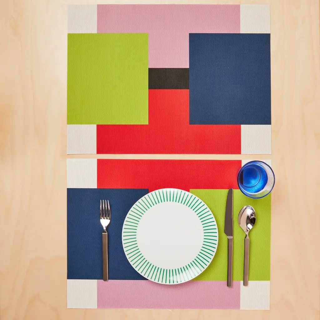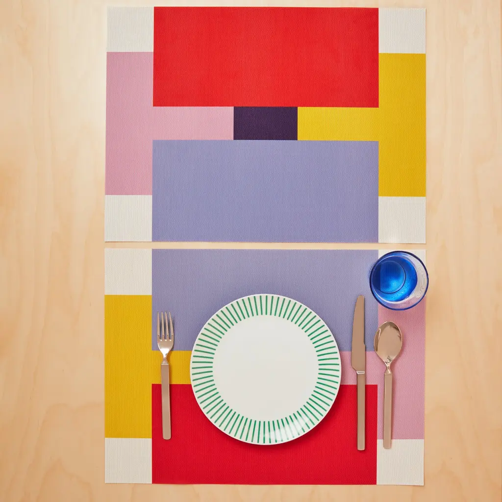 MoMA Exclusive: Inspired by colorful interaction between lines and squares from Color Field and minimalist paintings, this digitally printed Chilewich Layered Placemat adds a distinctive touch to your table settings. Woven on power looms in the USA, is made from woven vinyl and polyester, and contains 18% renewable veg