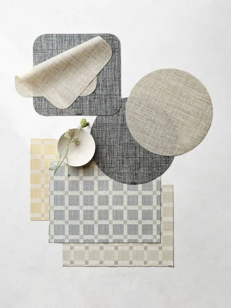 Our exclusive Crepe placemat covers all the bases as a rounded rectangle. Each antimicrobial mat weaves PVC yarns treated with TerraStrand, a proprietary compound containing vegetable compounds that replace petroleum-based plasticizers used to soften yarns. Ideal for indoor or outdoor dining, the neutral-toned placemat cleans up easily with just the wipe of a damp cloth and a quick towel dry.View all Chilewich products