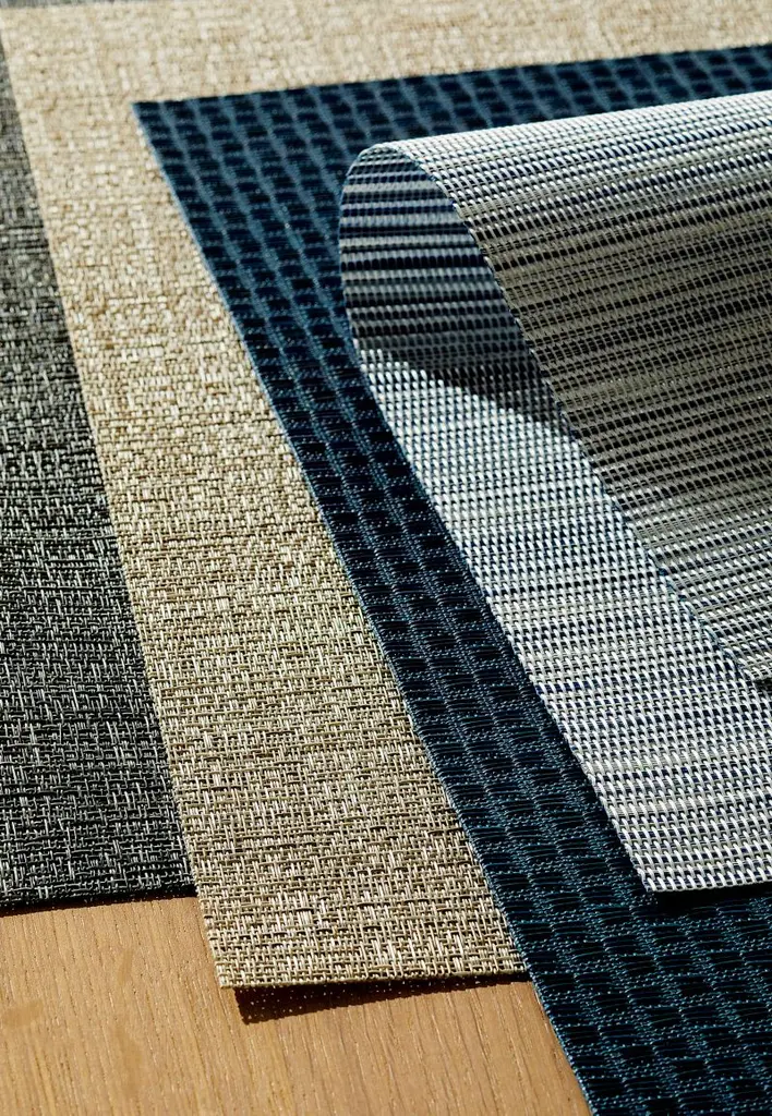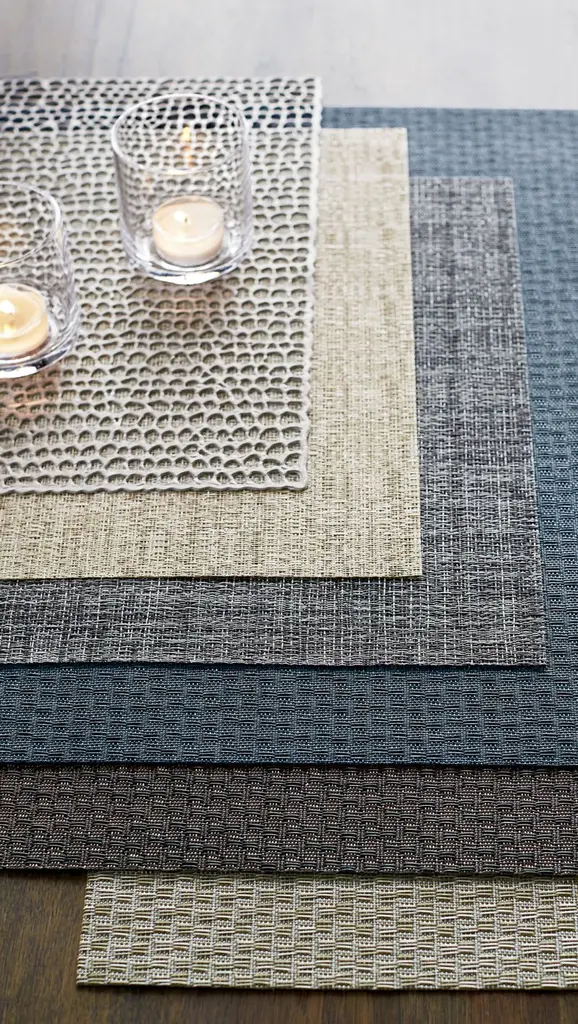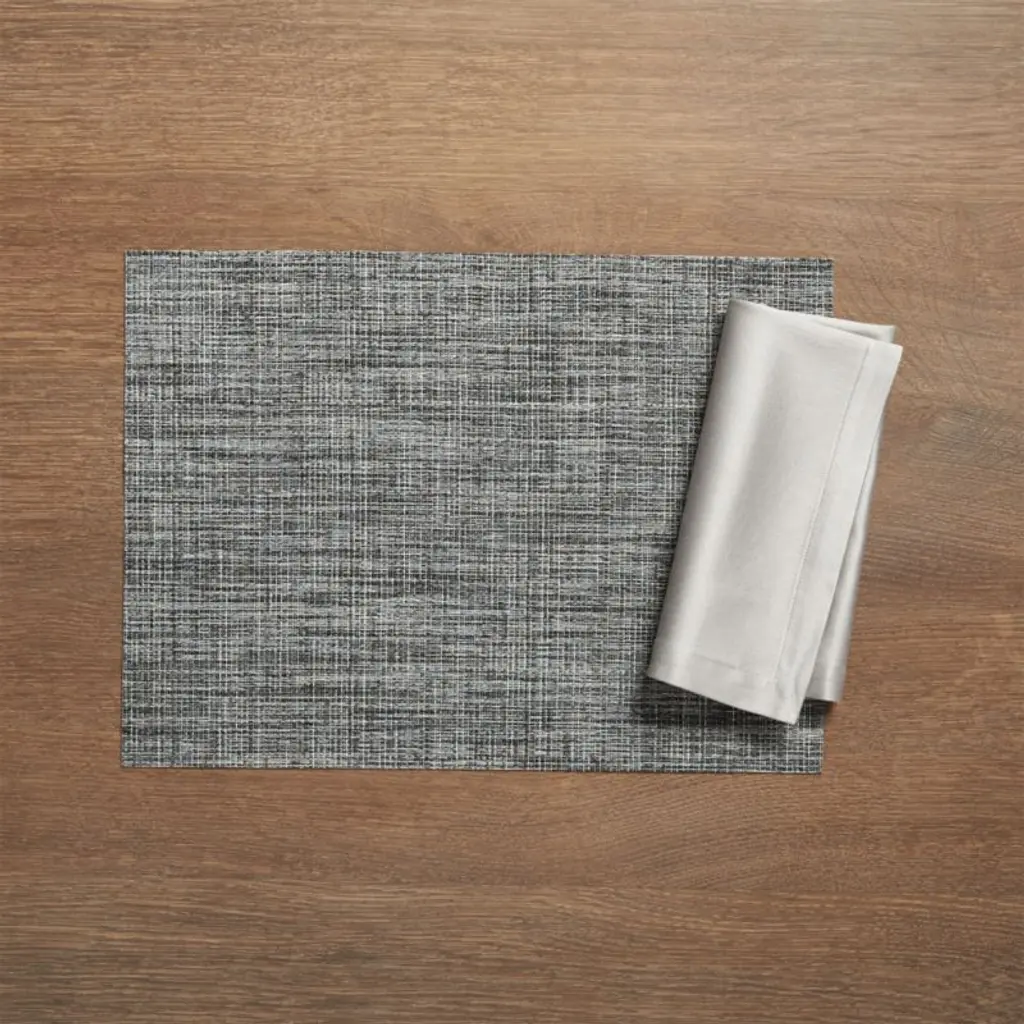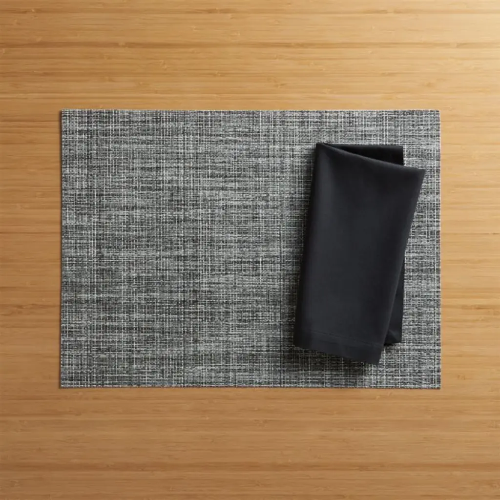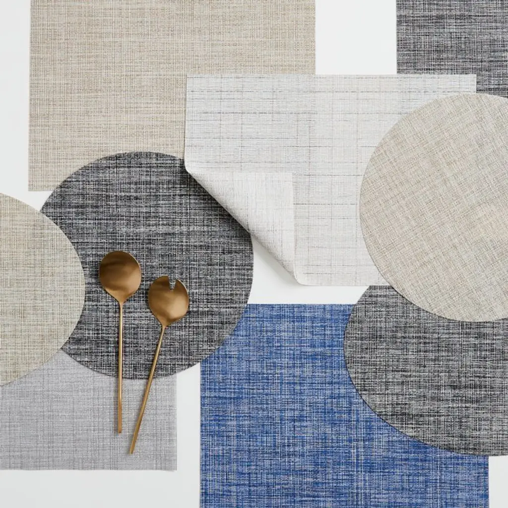 Our exclusive tonal grey woven vinyl-polyester placemat adds style to indoor or outdoor dining. To set a textured table, layer with linen napkins and a Chilewich table runner. When mealtime is over, our placemat cleans up easily with just the wipe of a damp cloth and a quick air dry.View all Chilewich products