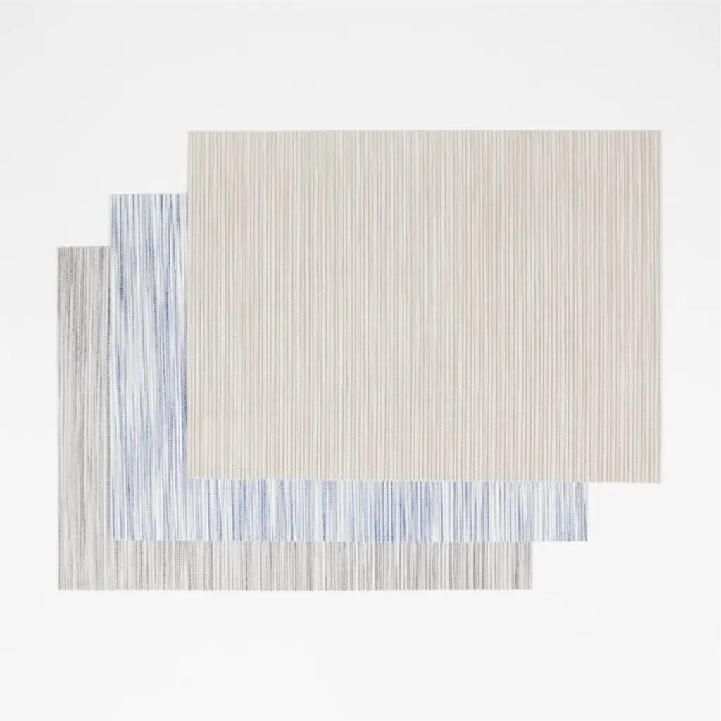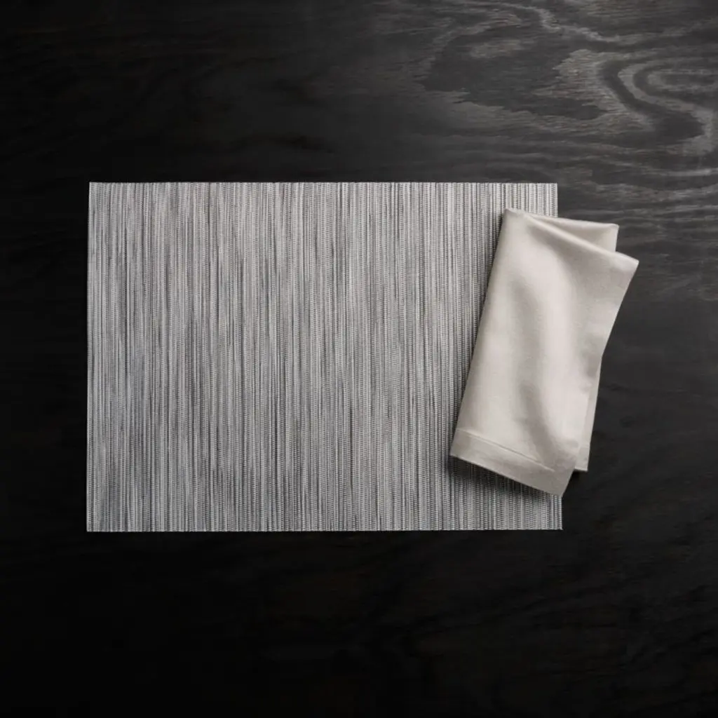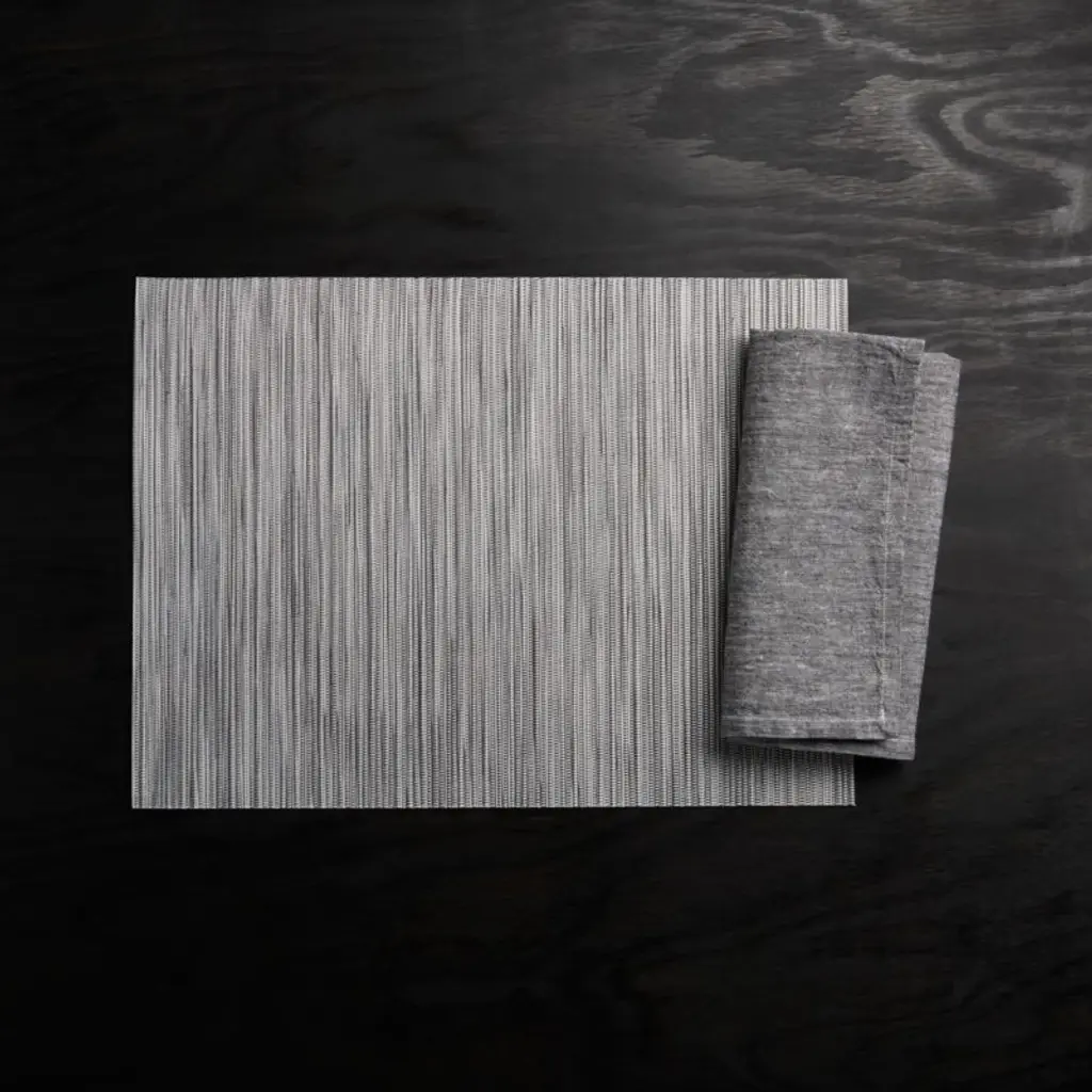 Durable polyester-vinyl placemat textures the table in calming tones of grey. Chilewich, famous for its unique and intriguing textiles, collaborated with Crate and Barrel to create this exclusive placemat. Subtle shades of grey ranging from pale to deepest charcoal weave together in a subtle, sophisticated arrangement. Pair the placemat with our grey chambray linen napkins to set a beautifully neutral and textured table.View all Chilewich products