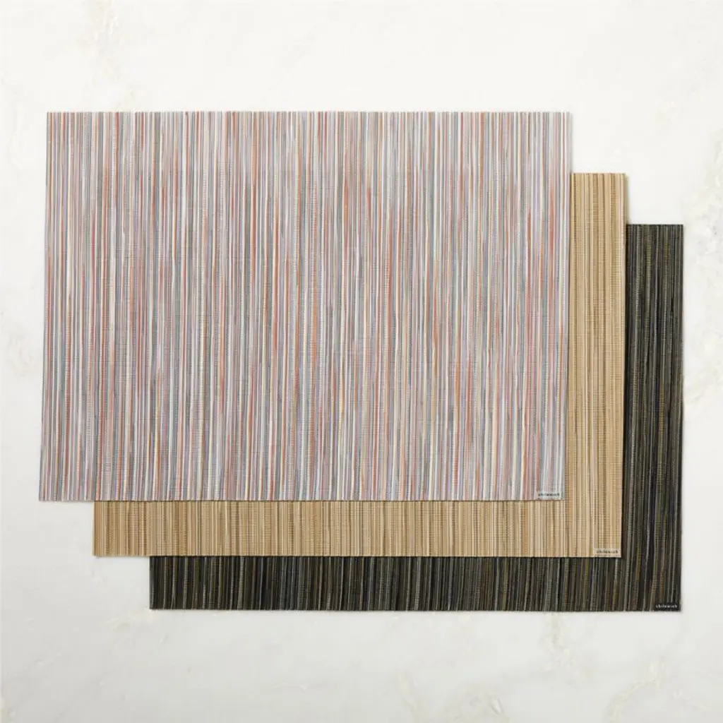 Rib-weave placemat by Chilewich has the beautiful look of natural fibers, yet is exceptionally durable and easy to care for. A medley of dark, moody colors in subtle striations adds rich texture to any place setting, indoors or outdoors.