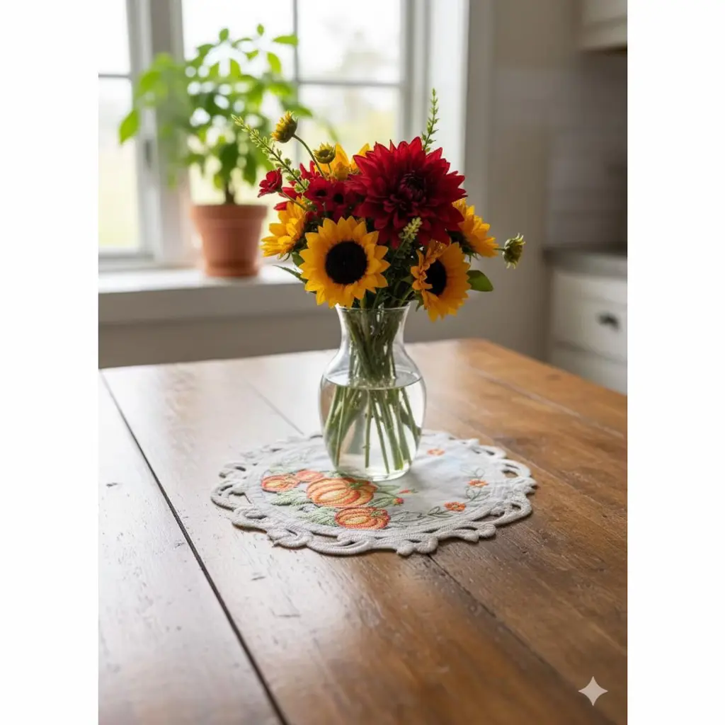 Embroidered rendered in intricate cutwork with details and vibrant colors table linens collection. A great in-style accent to all formal and casual dinners for cozy and warm! Our unique designs and rich details are a must have home fashion with a touch of elegant sense. Keep up with different occasions and ever changing colors of the holidays and seasons by adding a stunning piece to tie your existing interior decor together, or simply use it for an easy care focal point for parties and events. Our embroidered table linen home Fashions and creations will complete the table decor with class! The fabric is Machine Wash and water resistant for easy case. Simply roll and lay flat for storage.