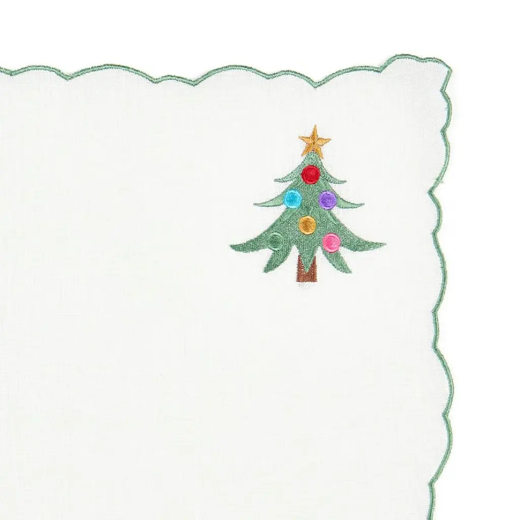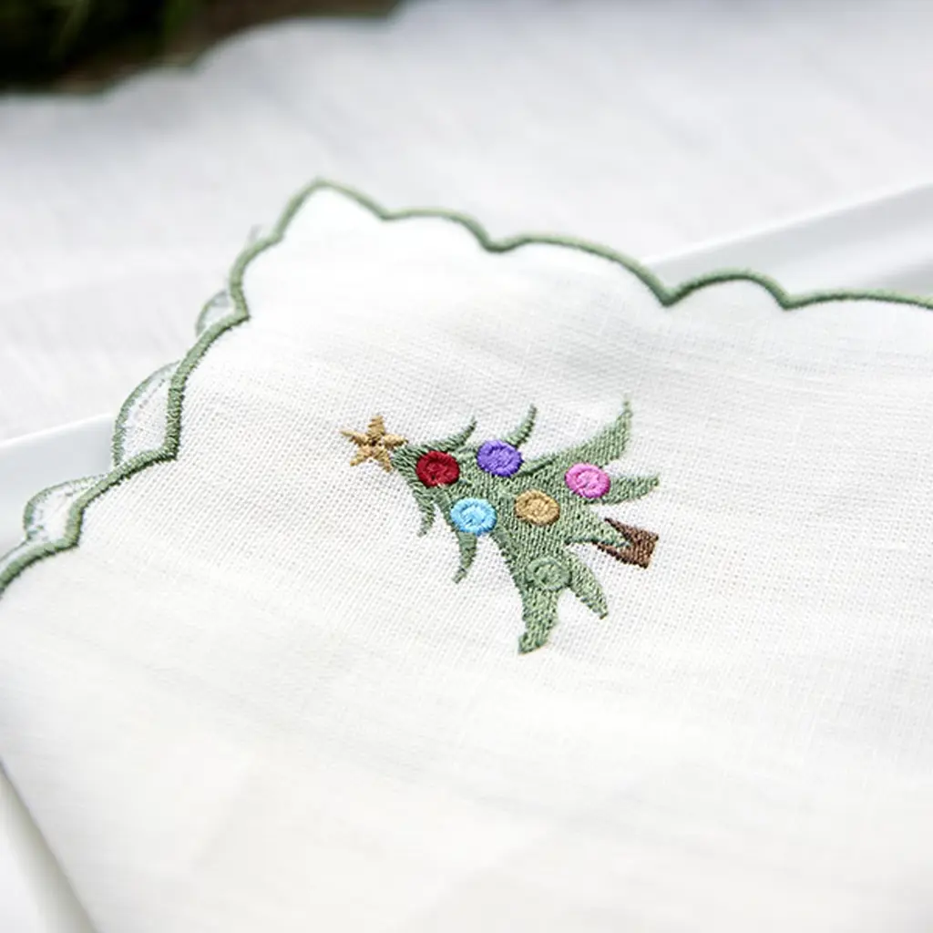 Christmas Tree Embroidery Linen Placemats Set Of 2