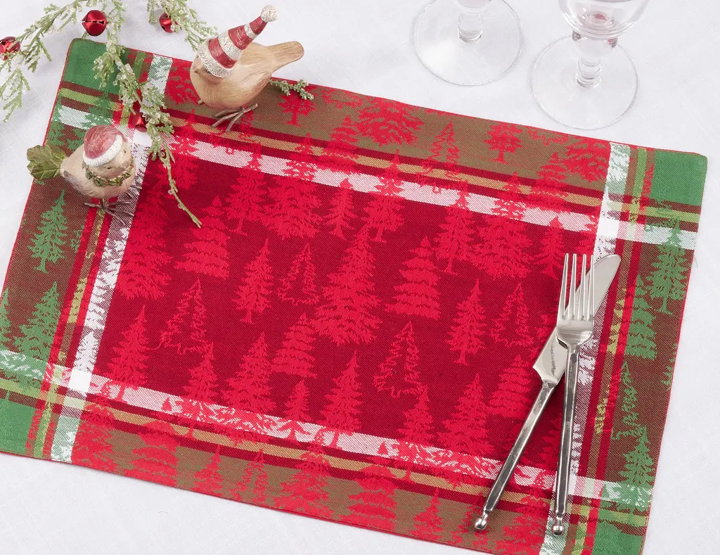 Light up your celebrations and entertain guests with these beautiful Christmas Tree Plaid Design Placemats. The design features rich, vivid tones in traditional Christmas colors that are easy to style and coordinate with any existing holiday decor. Don't forget to complete your table with matching dinnerware and decor accents for a cohesive look!