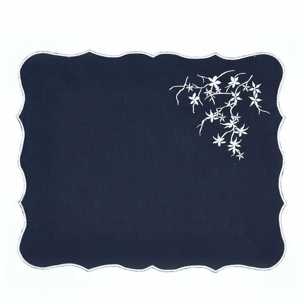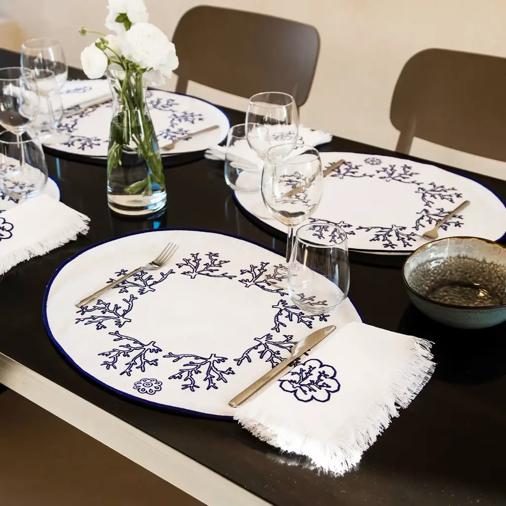 Corallo Blu Set Of 2 Oval Embroidered Table Mats
