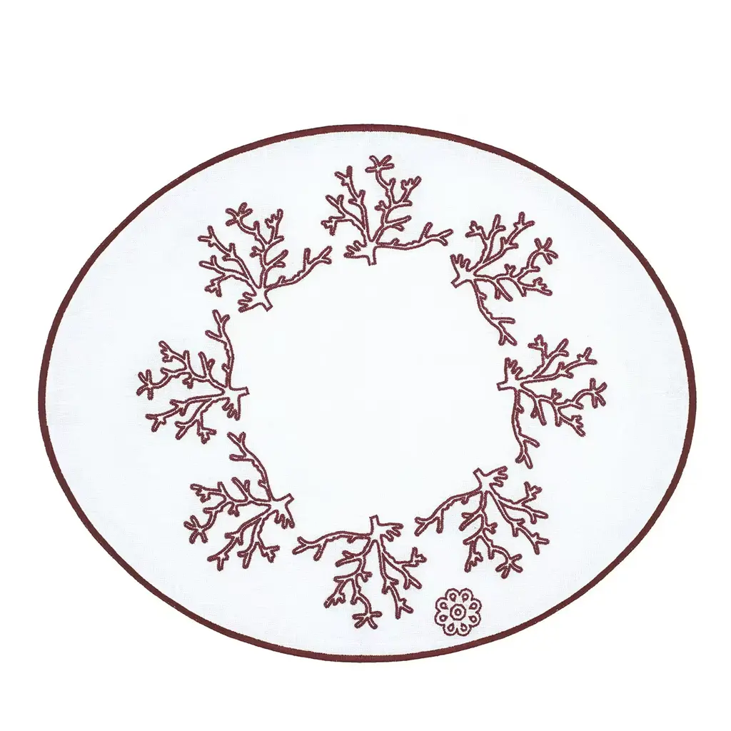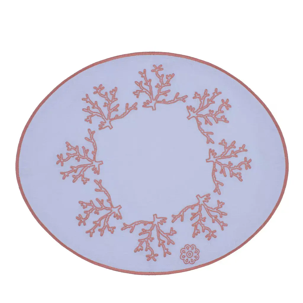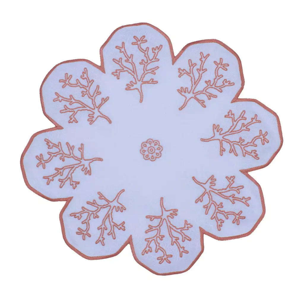 This superb set of two oval table mats in Masters of Linen certified white linen allows for setting a refined breakfast table for two while evoking marvelous underwater scenarios. The minute pink Mako cotton embroideries trace intricate corals, where every inch results from the careful manual work of master artisans. More color options and a six-piece variant are also available.