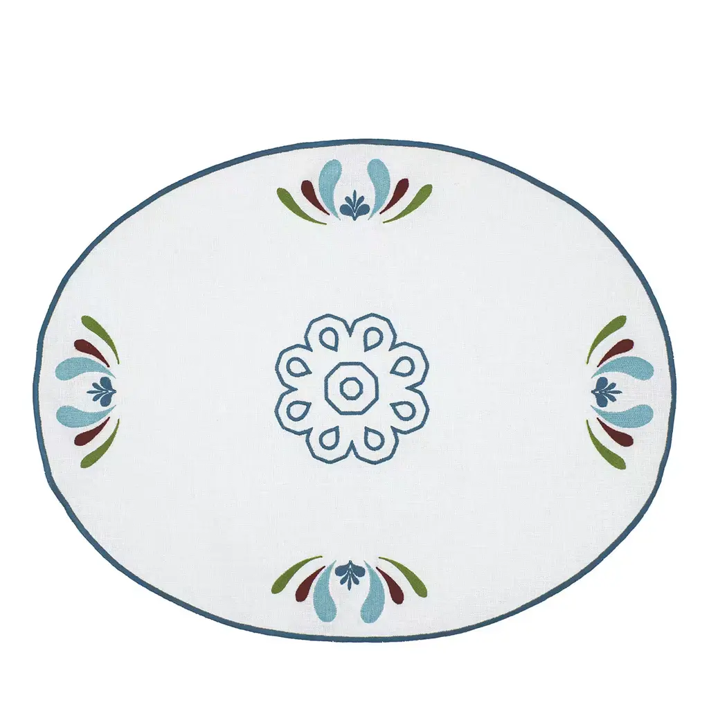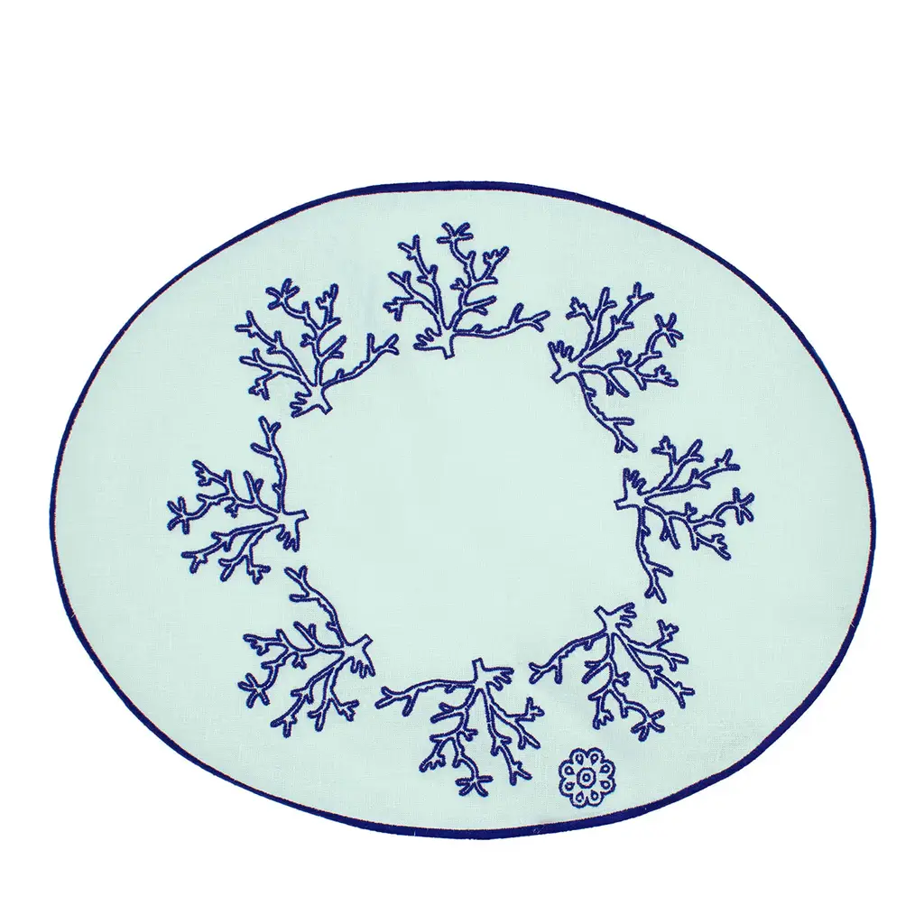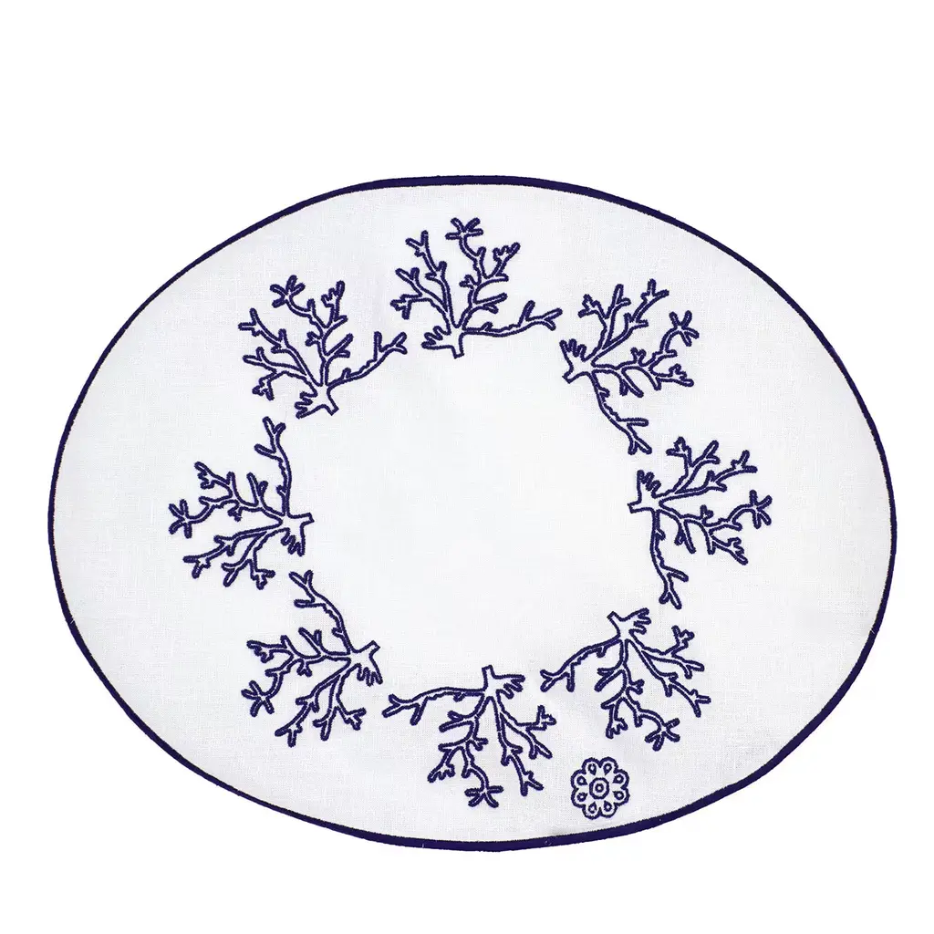 This superb set of two oval table mats in Masters of Linen certified white linen allows for setting a refined breakfast table for two while evoking marvelous underwater scenarios. The minute pink Mako cotton embroideries trace intricate corals, where every inch results from the careful manual work of master artisans. More color options and a six-piece variant are also available.