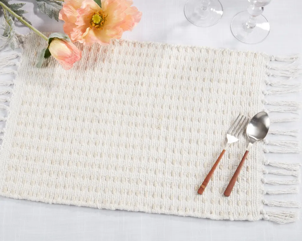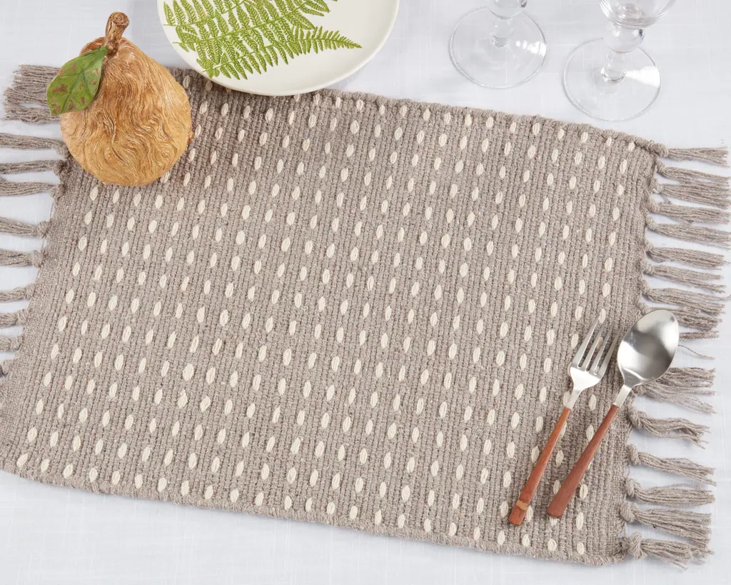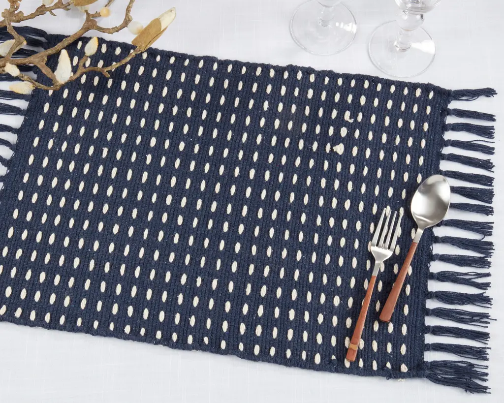 The Dashed Woven Cotton Placemats bring an original touch to your tabletop. Providing your decor with texture and warmth, this lovely set is ideal for any occasion, from garden lunches to guest dinners. Pair with matching runner and solid color tableware.
