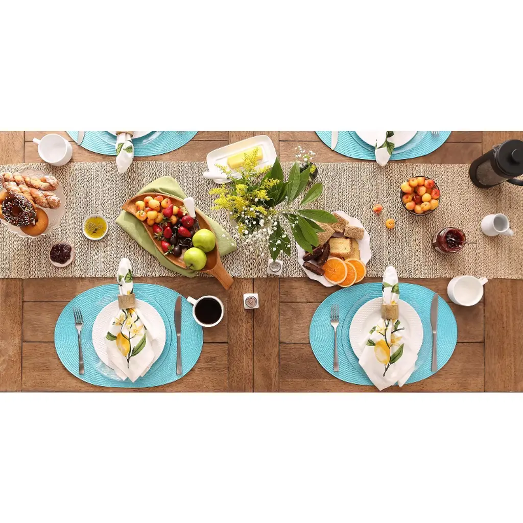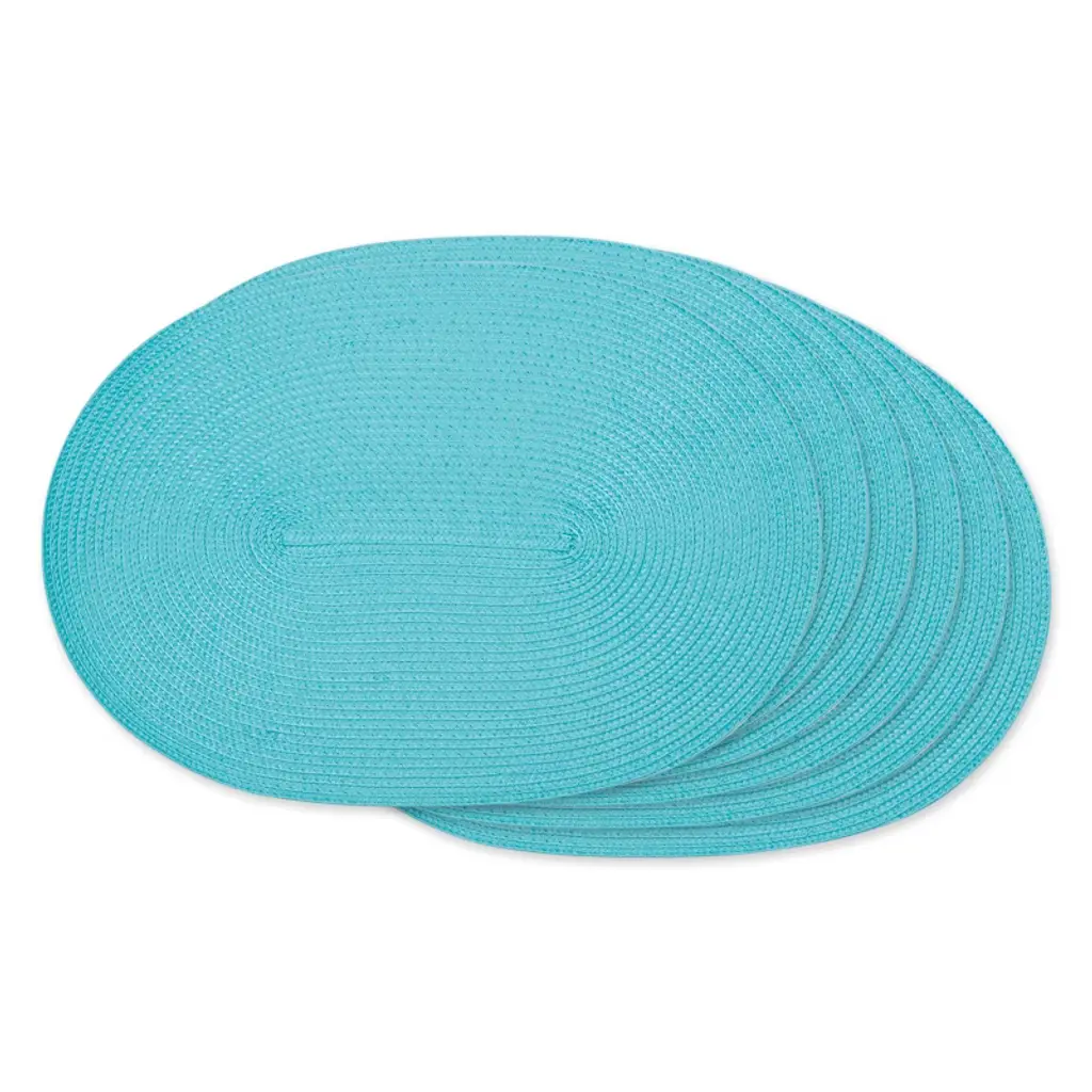 Dii Oval Placemat Set 6 Piece, Aqua, 12x18"