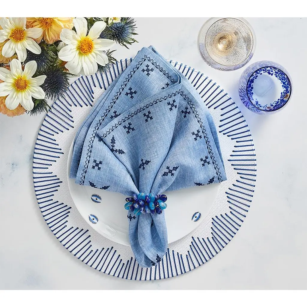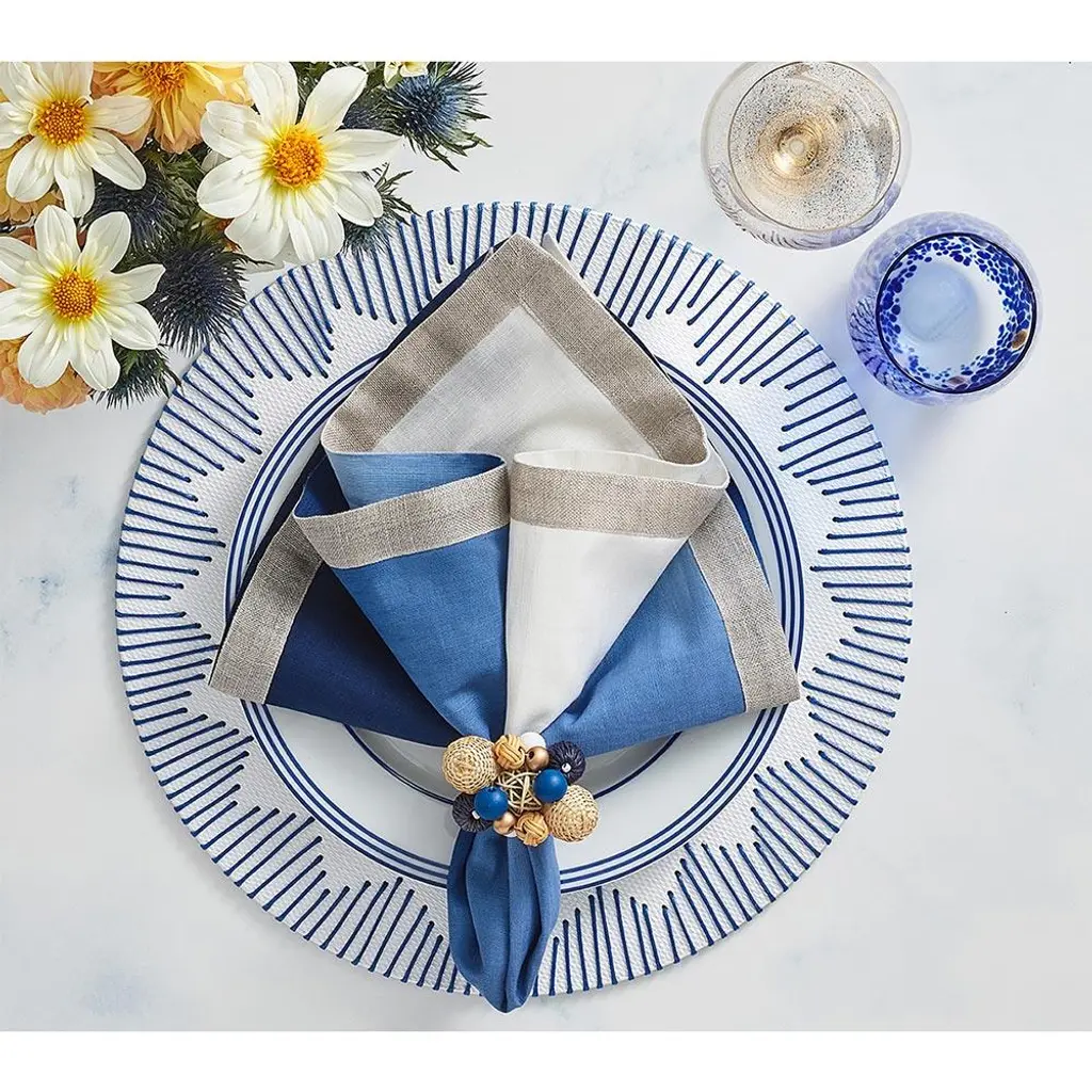 Dream Weaver Modern White Chevron Blue Border Placemat - Set Of 4