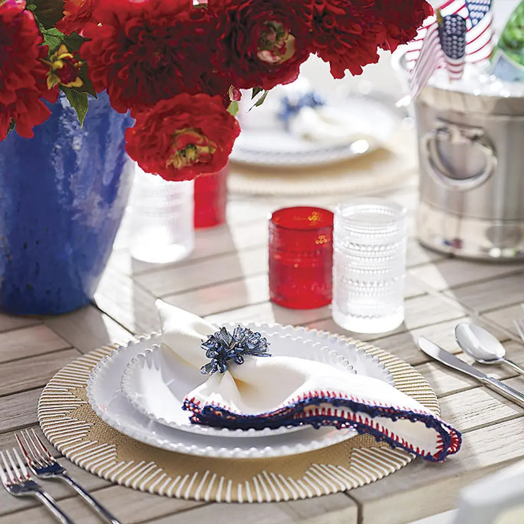 Featuring red, white and blue, these Dream Weaver Placemats are perfect for summertime celebrations, but versatile enough for festive place settings all year round. This round placemat showcases exquisite cord stitching in blue, contrasting against the white fabric base. Crafted of plastic, polyurethane and polyester Hand wash only Imported At Frontgate, our primary focus is quality. We guarantee that every product we sell will stand up to the supreme test – our customers' satisfaction. To learn more about our policies, visit our Shipping & Processing, Returns & Exchanges and Warranty & Price Guarantee pages. Featuring red, white and blue, these Dream Weaver Placemats are perfect for summertime celebrations, but versatile enough for festive place settings all year round. This round placemat showcases exquisite cord stitching in blue, contrasting against the white fabric base. Crafted of plastic, polyurethane and polyester Hand wash only Imported At Frontgate, our primary focus is quality. We guarantee that every product we sell will stand up to the supreme test – our customers' satisfaction. To learn more about our policies, visit our Shipping & Processing, Returns & Exchanges and Warranty & Price Guarantee pages.