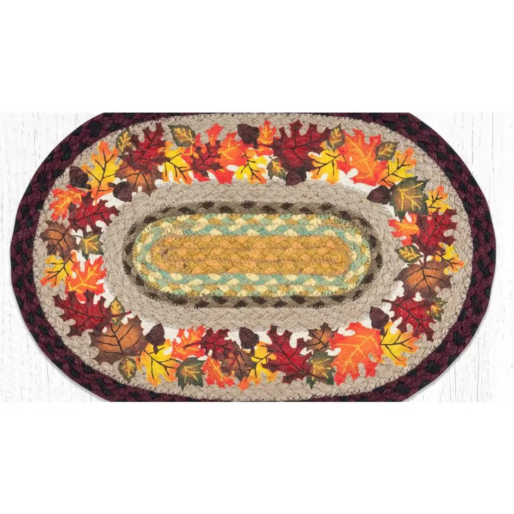 Earth Rugs Autumn Oval Placemat 13"x19" Rustic Seasonal Table Decor Made from 100% natural jute, this eco-friendly placemat is hand-braided for durability and rustic style. Measuring 13"x19" (33 x 48.3 cm), it provides ample coverage to protect surfaces from heat, moisture, and spills while enhancing farmhouse or country-themed decor. Key Features: Made from 100% natural jute for eco-friendly and sustainable use Hand-braided oval construction adds rustic, seasonal charm Autumn leaves design brings warm, festive fall decor to your table Perfect oval size (13"x19") protects tabletops from heat, spills, and scratches Lightweight yet sturdy — ideal for everyday use or seasonal settings Easy maintenance — spot clean with mild soap and water, air dry Versatile rustic style complements farmhouse, country, or seasonal decor