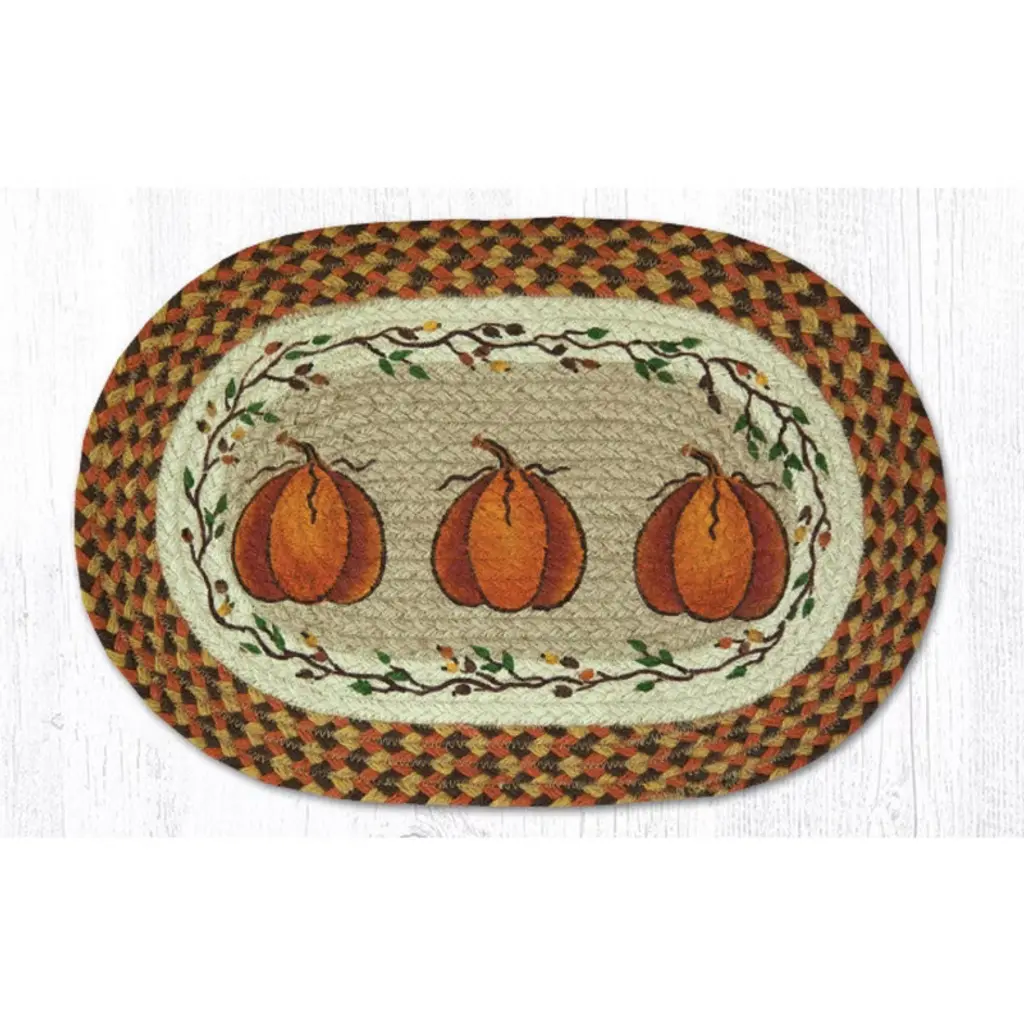 Earth Rugs Harvest Pumpkin Oval Braided Placemat 13"x19" – Rustic Fall Thanksgiving Table Decor