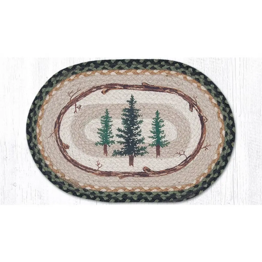 Earth Rugs Tall Timbers Oval Braided Placemat 13"x19" – Rustic Cabin Lodge Table Decor The Earth Rugs Tall Timbers Oval Placemat (13"x19") offers a perfect balance of rustic charm and practicality. With its lodge-inspired design, this placemat is ideal for creating a warm, cabin-style dining atmosphere Key Features: Features a rustic tall timbers design, perfect for lodge or cabin decor.Handcrafted with eco-friendly natural fibers for durability and charm.Measures 13"x19" (33 x 48.2 cm), ideal for dining tables and kitchen settings.Protects surfaces from heat, scratches, and spills.Adds farmhouse and rustic appeal to everyday or seasonal dining.Lightweight, easy to move, and versatile for different table sizes.Spot clean for simple, long-lasting care.
