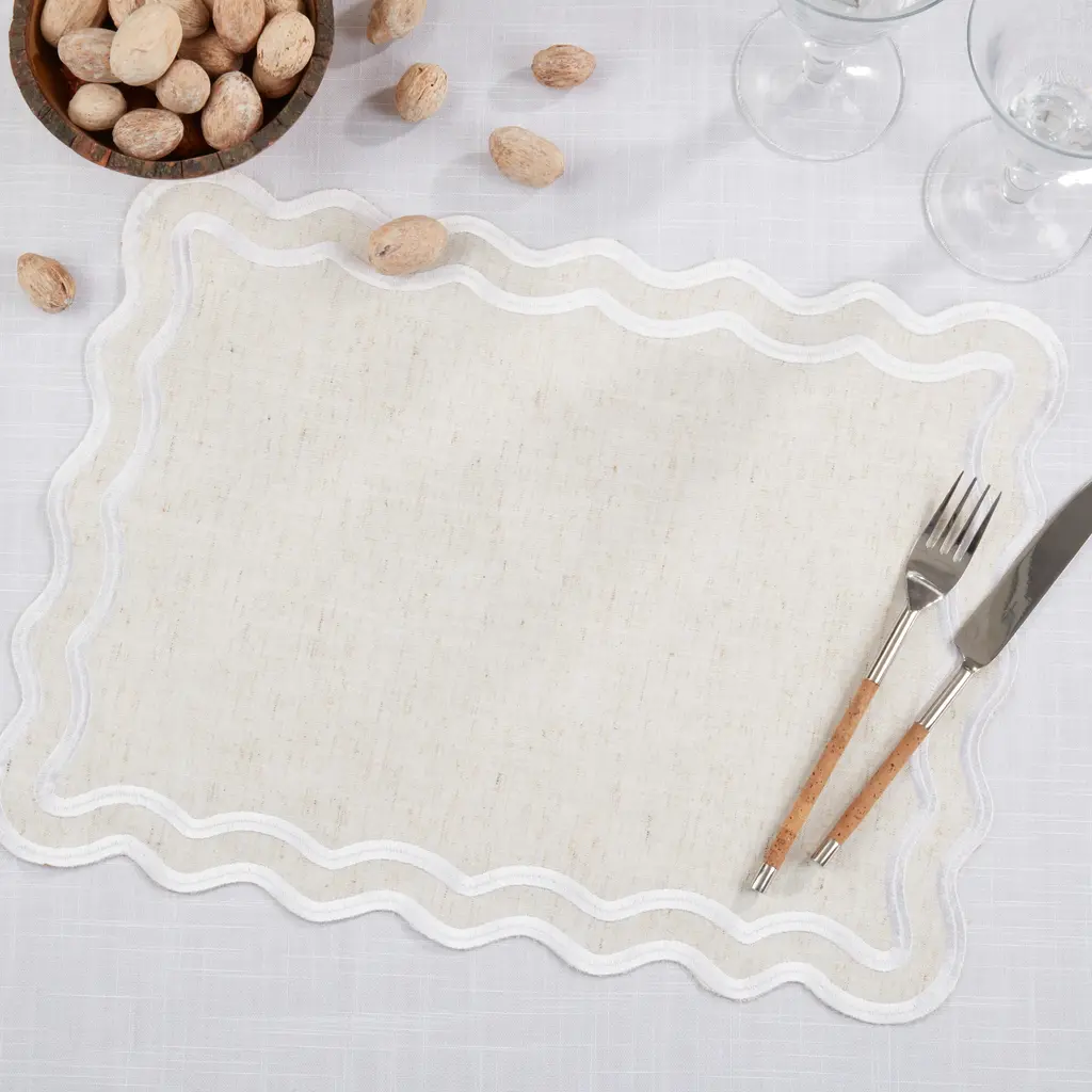 This set of Eco Scallop Border Placemats blends earth-friendly fabric with a playful border. A stylish way to dress up casual meals or everyday dining.