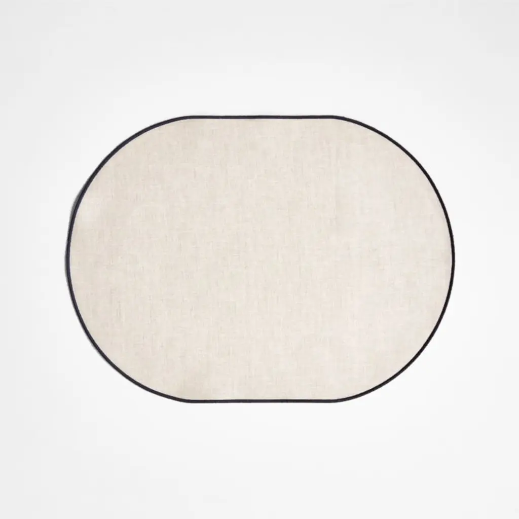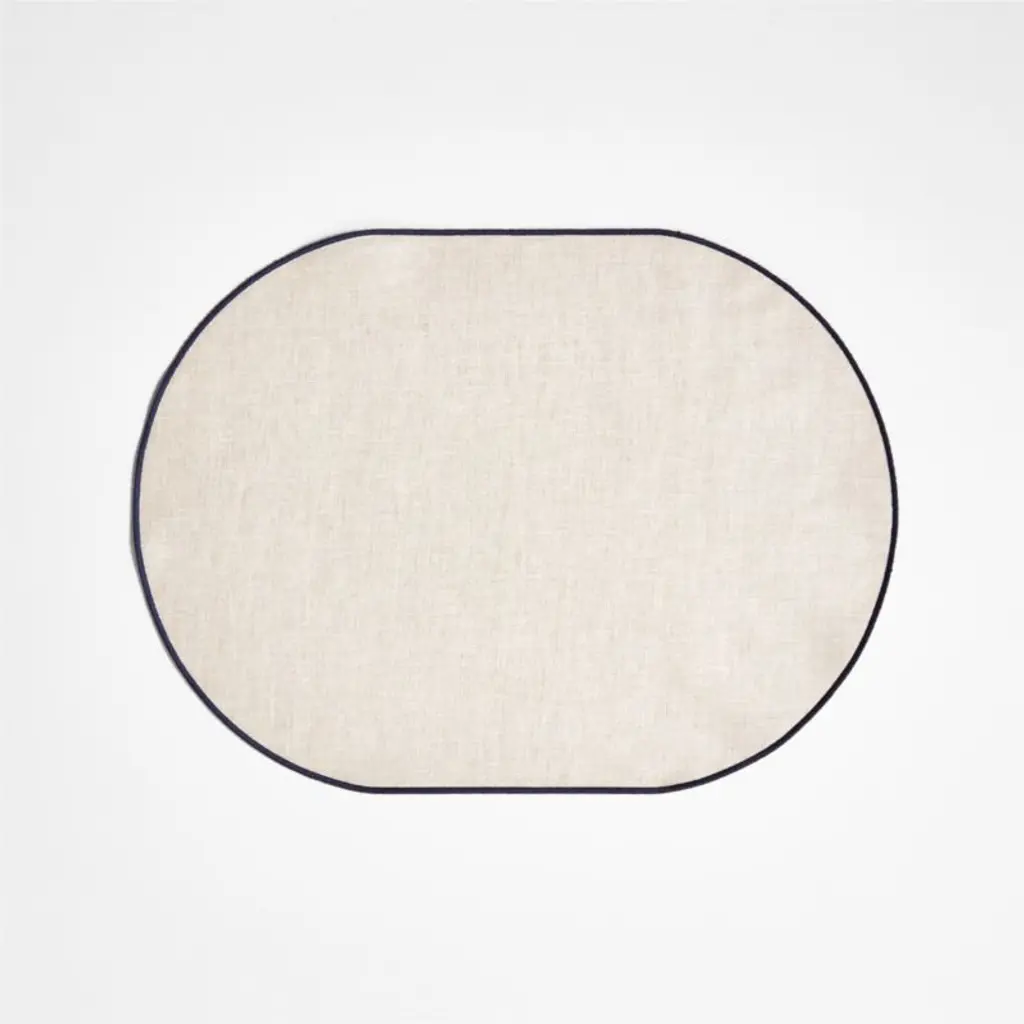 Like the name states, this easy-care placemat amps up the style factor of casual meals. Green merrow stitching puts the focus on the mat's clean oval shape and natural linen base. Thanks to a clear coating, the mat is stain-resistant and wipes clean with a damp cloth.