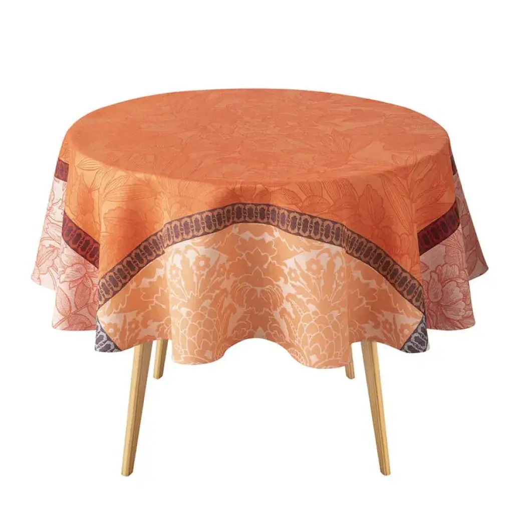 The floral patterns and vibrant colors of this collection will captivate you for a joyful and refreshing getaway. This collection is an invitation to travel to distant lands with lush vegetation. Since 1888, Le Jacquard Francais has created a collection of table linens without equal. Weavers, warp beamers, knotters and other specialists work in harmony to perfect the weaves and colors of all of their linens. Classic Le Jacquard Francais linens are characterized by using framed woven patterns to create timeless tablecloths, napkins, placemats and table runners that will beautify your tables for many years. Le Jacquard Francais coated tablecloths are made of 100% cotton weave with long fibers. They are waterproof and stain-resistant thanks to a patented and exclusive acrylic coating that withstands washing. Newly introduced, LJF by Le Jacquard Francais is a more casual line of contemporary looks that mixes colors and patterns and plays with graphics. Practical and easy to use, these tablecloths will stand up to frequent use in the kitchen or patio.