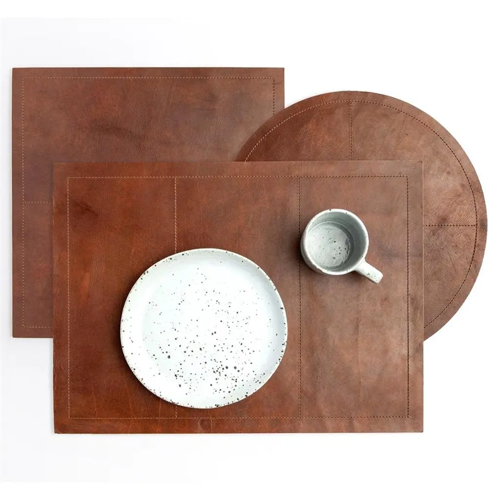 Evan Rustic Lodge Brown Leather Round Placemat - Set Of 2