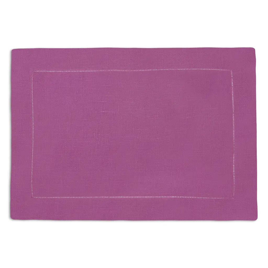 Beautiful placemats in bold solid colors, with a row of hemstitching detail for an elegant dining table.